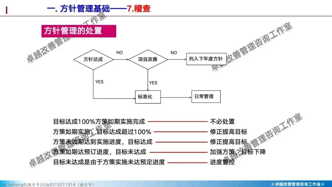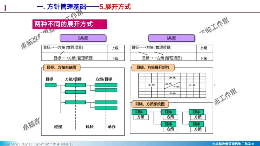 · 方针管理模式:高层先定1-3个突破性目标,然后通过X矩阵层层分解。每个关键项目都要回答:这个项目对年度方针的贡献是什么?
