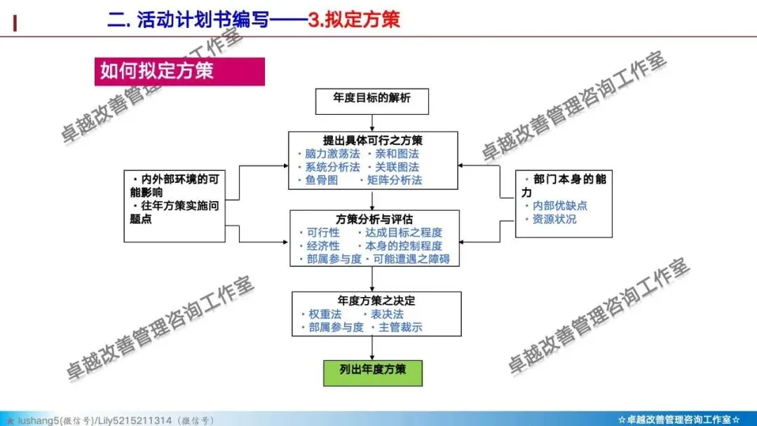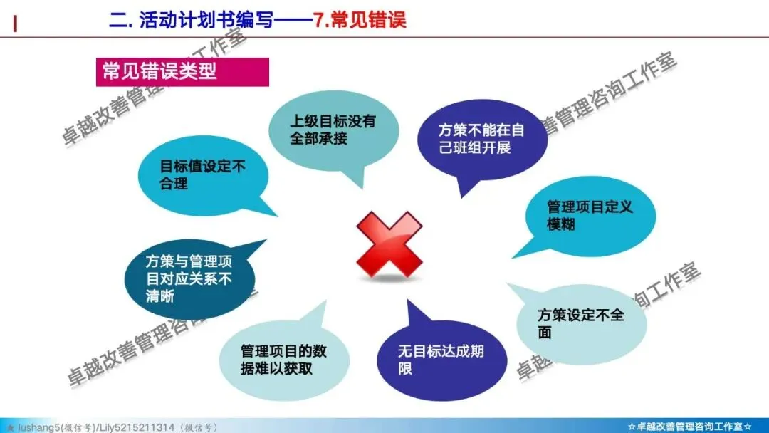 · 中层:将方针转化为改善焦点,识别出影响交付周期的瓶颈项目,比如“原材料采购周期缩短项目”、“生产排程优化项目”。