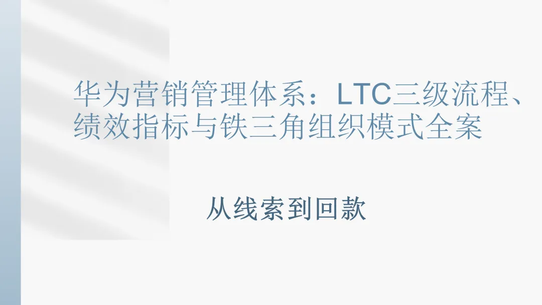 100页PPT华为营销管理体系:LTC三级流程、绩效指标与铁三角组织模式全案