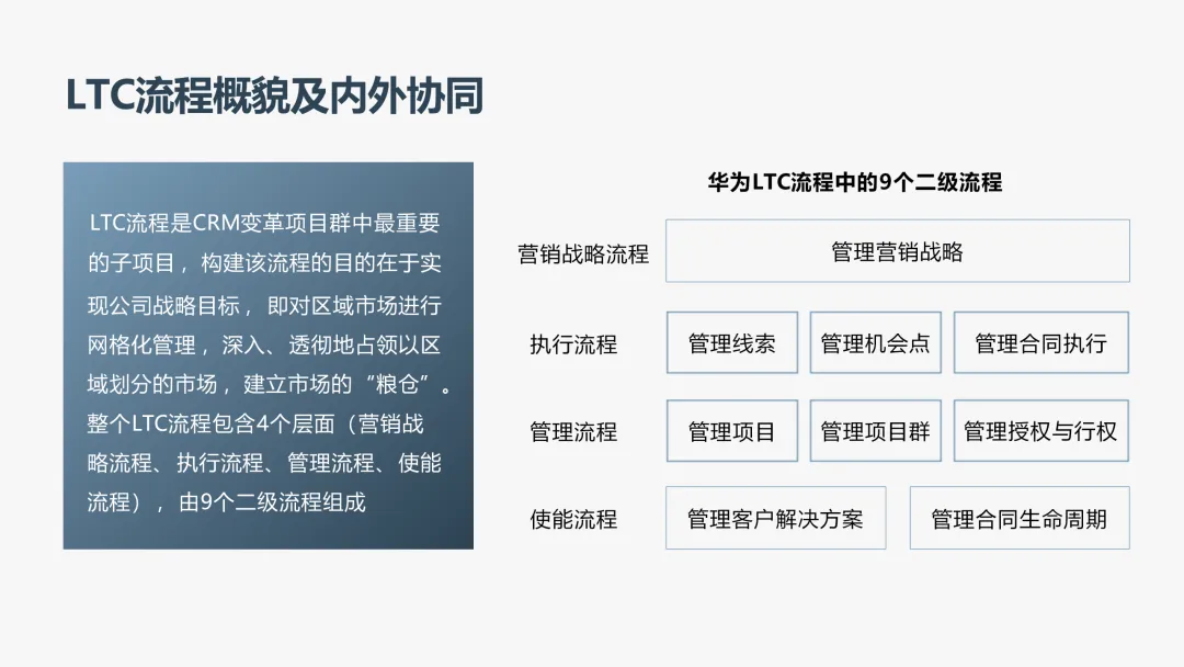 通过对全流程各环节的细致管理和四大子流程的有序推进,LTC 不仅能优化企业销售和运营效率,还能强化客户关系,最终确保企业拥有可持续的盈利能力和市场竞争力。