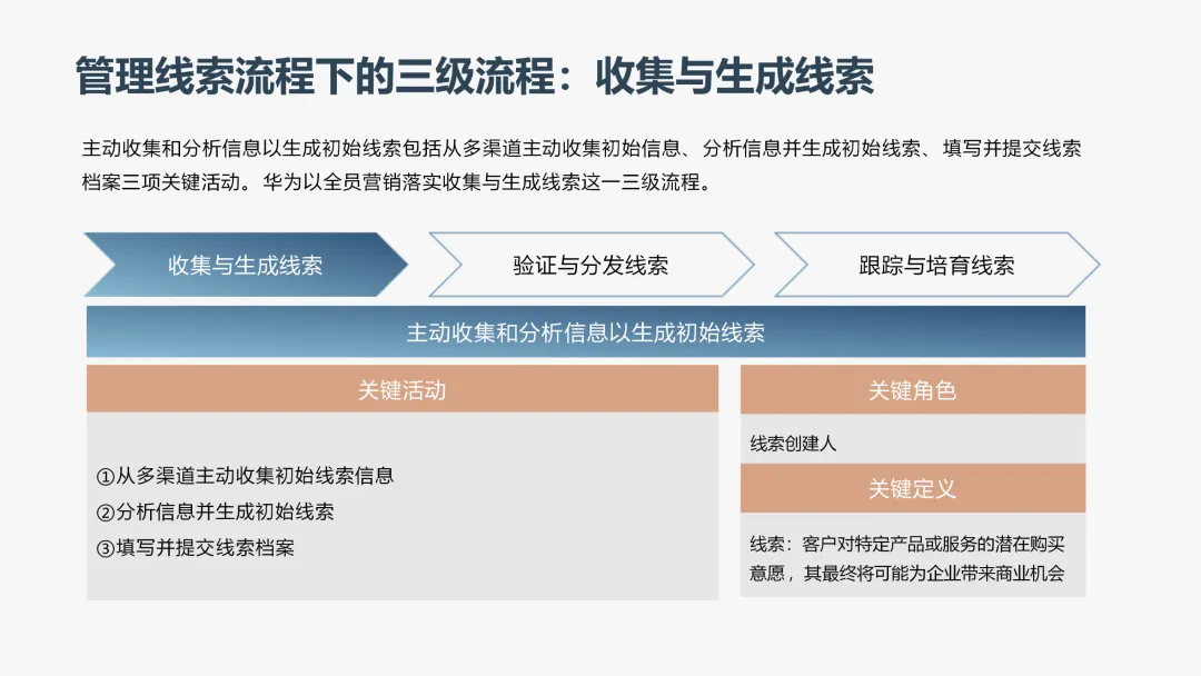 LTC 流程的精细化管理依托4 个紧密相连的关键子流程,各子流程有明确的目标策略、关键活动和成功要素,是实现线索到现金转化的核心抓手,具体如下: