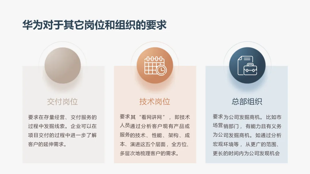 | 商机 | | 1. 抓快:快速挖掘、快速跟进商机;2. 抓早:早做计划、沟通、资源储备;3. 核心指标:商机覆盖、商机转换 |