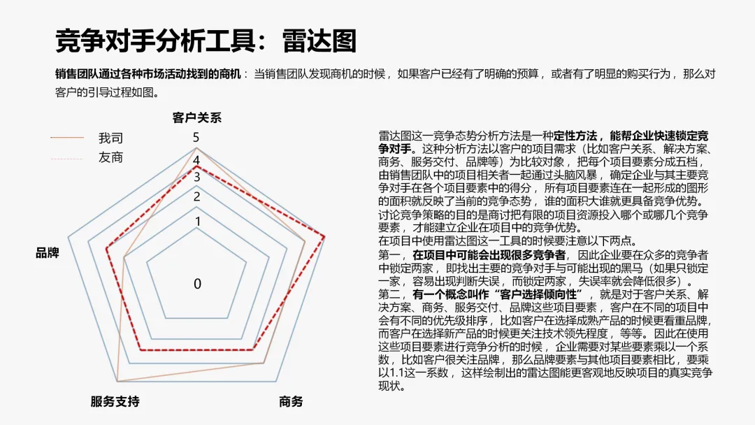 | 关系 | | 1. 人脉为业务发展的发动机;2. 结合优质产品,做好人员关系维护和客户满意度处理 |