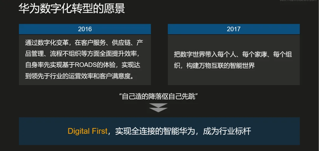 从2016到2017年,华为逐步确立Digital First战略,目标是自身率先实现基于ROADS的体验——即实时(Real-time)、按需(On-demand)、全在线(All-online)、自助(DIY)、社交化(Social)。这不是一句口号,而是对运营效率和客户满意度的硬约束。供应链响应更快、产品管理更精准、流程组织更敏捷,每一个环节都用数据说话、用智能驱动。