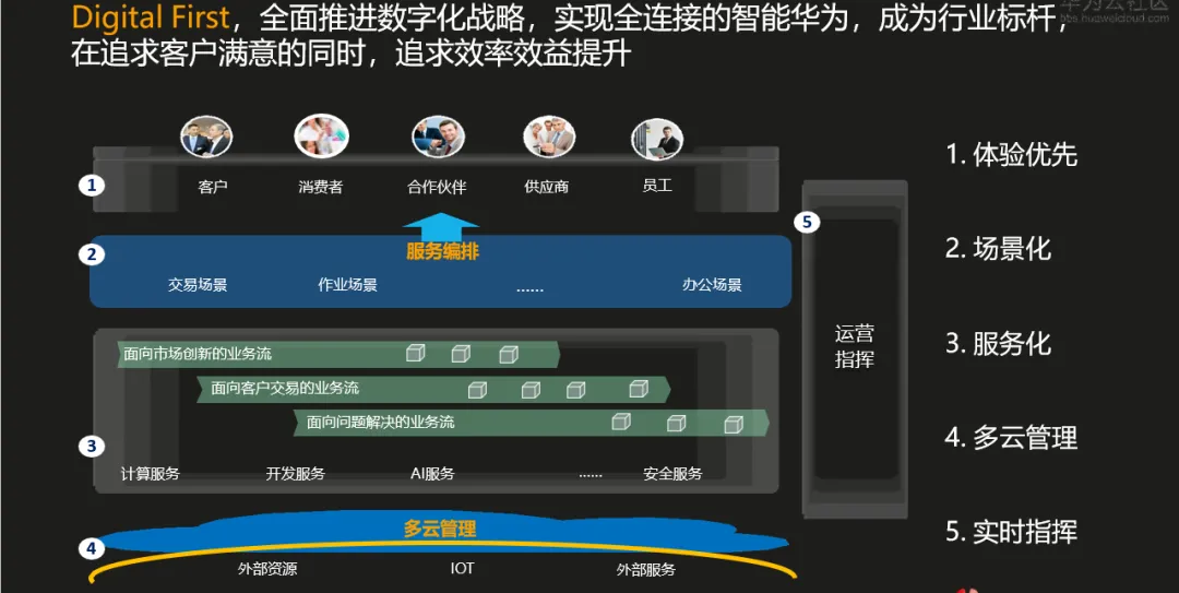 数字化转型喊了多年,真正敢于率先“跳伞”的企业并不多。华为从2016年起明确提出数字化变革愿景:通过数字化,在客户服务、供应链、产品管理、流程组织等方面全面提升效率,把数字世界带入每个人、每个家庭、每个组织,构建万物互联的智能世界。