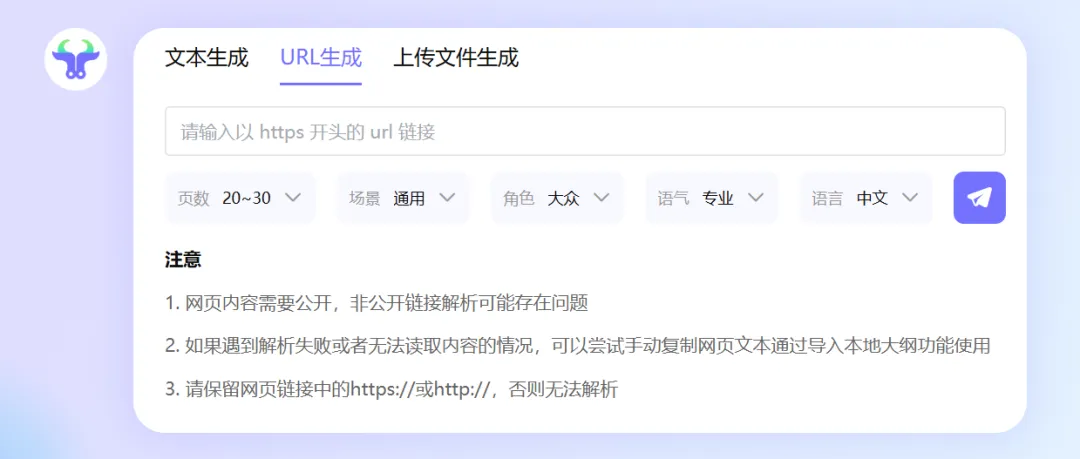 如果你需要整合网络信息,快速制作行业分析、竞品研究等PPT,可以选择"网页链接生成"方式。这种方法能够自动抓取网页内容并提炼核心信息。