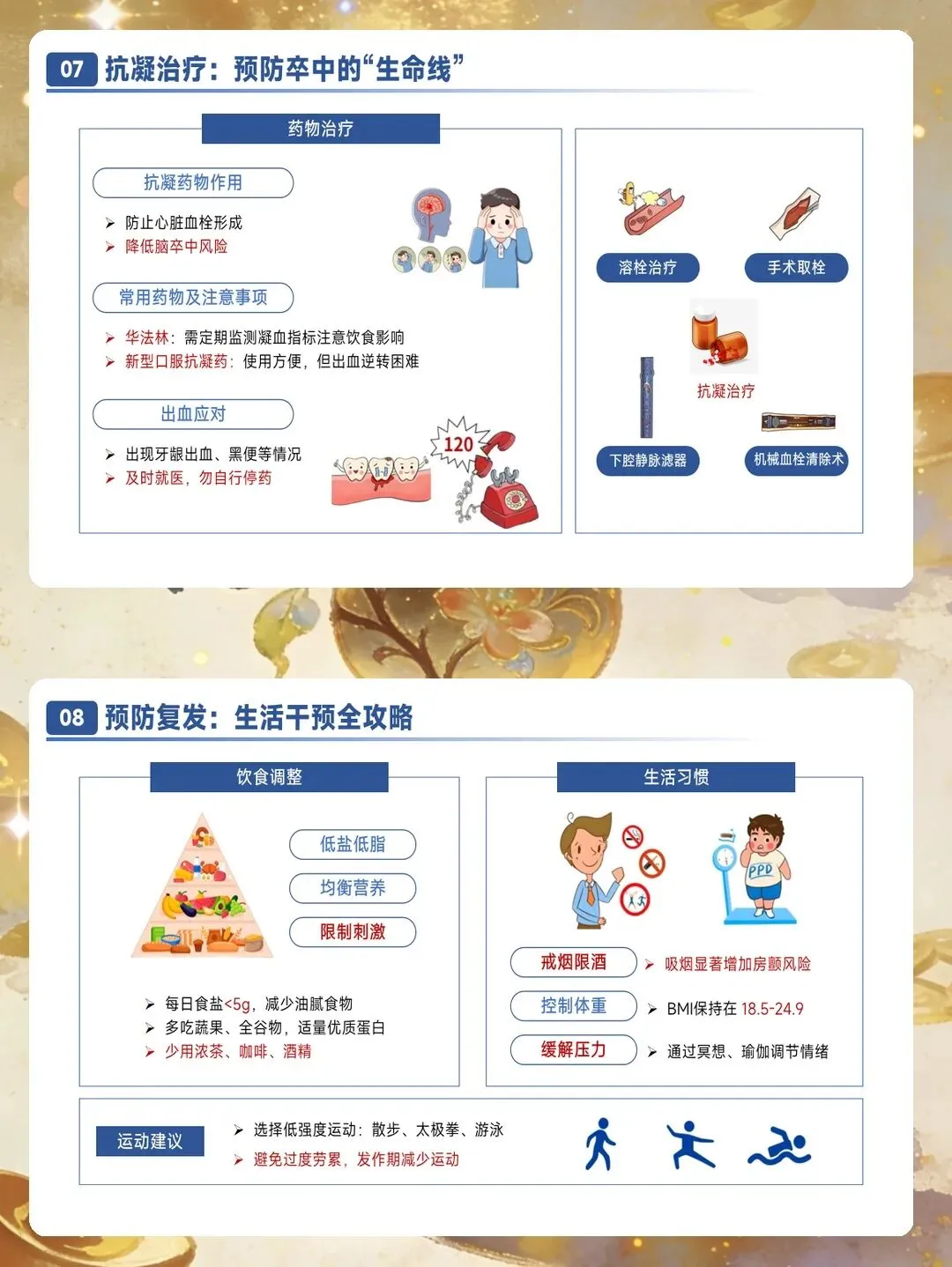 出血风险管理贯穿抗凝治疗全过程。轻度出血如牙龈出血、皮肤瘀斑可采用局部压迫止血,暂停抗凝药物1至2次剂量。严重出血如呕血、黑便、肉眼血尿需要立即停用抗凝药物,建立静脉通路,准备输血,必要时使用特异性拮抗剂。颅内出血是最严重的并发症,需要多学科协作处理,立即启动神经外科会诊,头部CT明确出血量,控制血压。大出血后重启抗凝的时间需要个体化评估,非关键部位出血可在12小时内恢复,脑出血高风险患者可能需要延迟4至8周。
