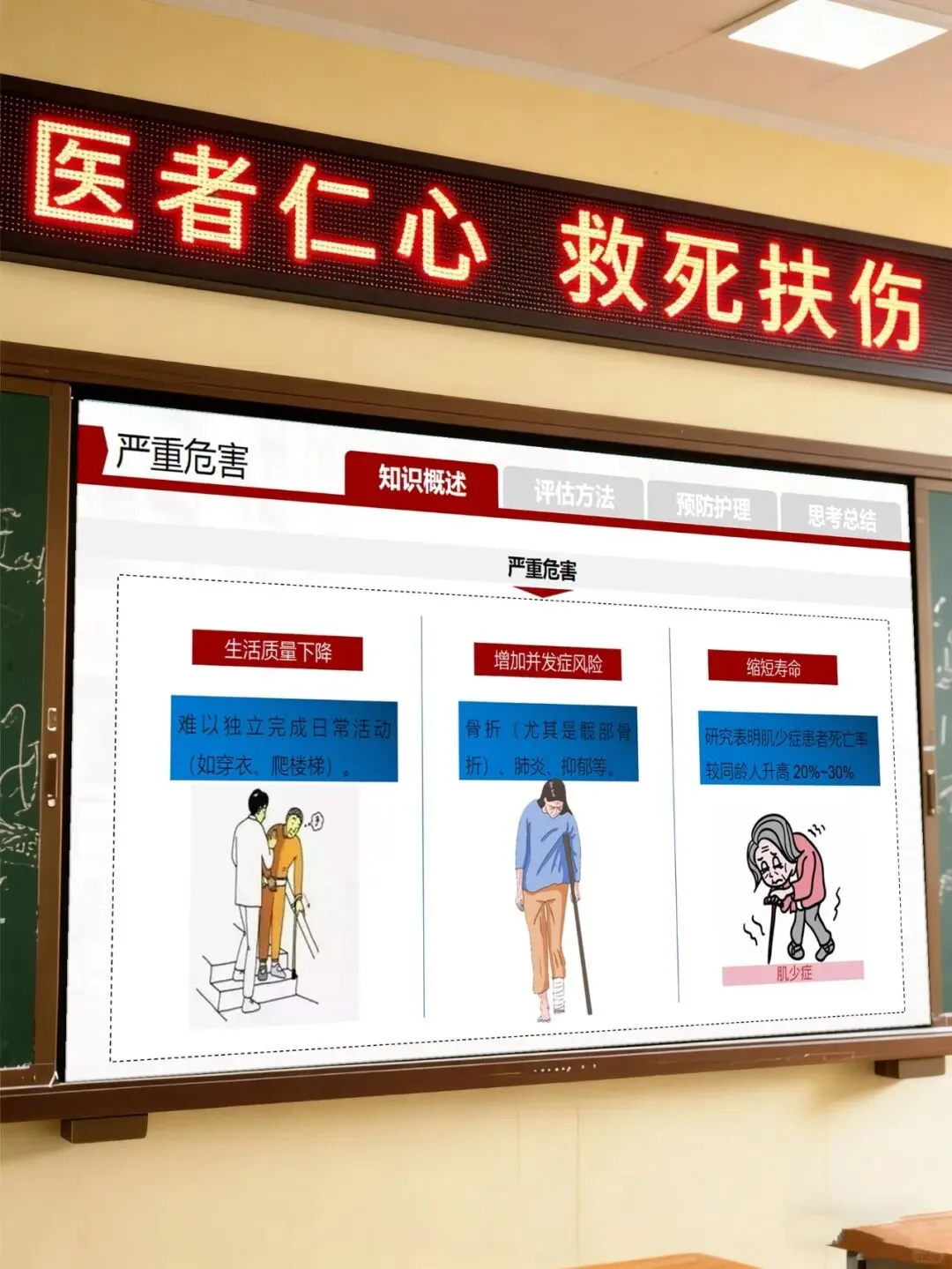 肌少症护理是系统工程,既需要咱们把每个护理细节做扎实,也需要和营养师、康复师做好多学科协作,更要做好长期管理,提升患者的干预依从性。只要咱们心往一处想、劲往一处使,用专业的全程照护为患者守护肌肉健康,就能筑牢老年健康防线,让他们拥有更有尊严、更有质量的生活。今天的授课就到这里,后续临床护理中有任何问题,咱们随时交流探讨。