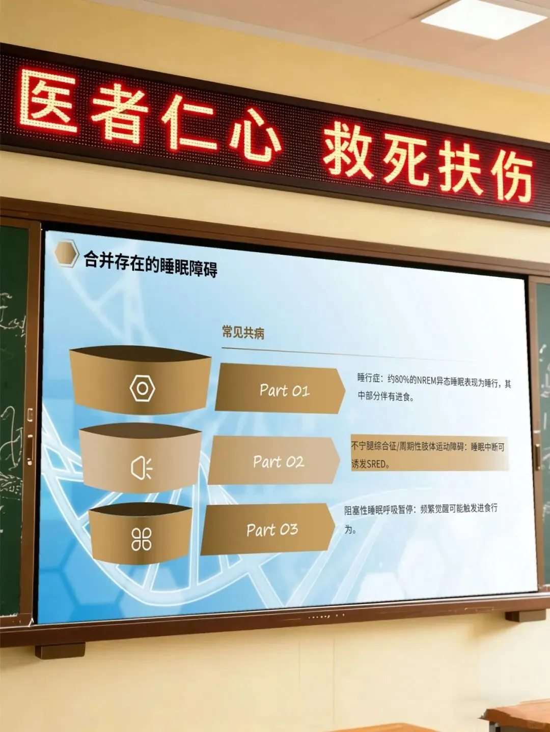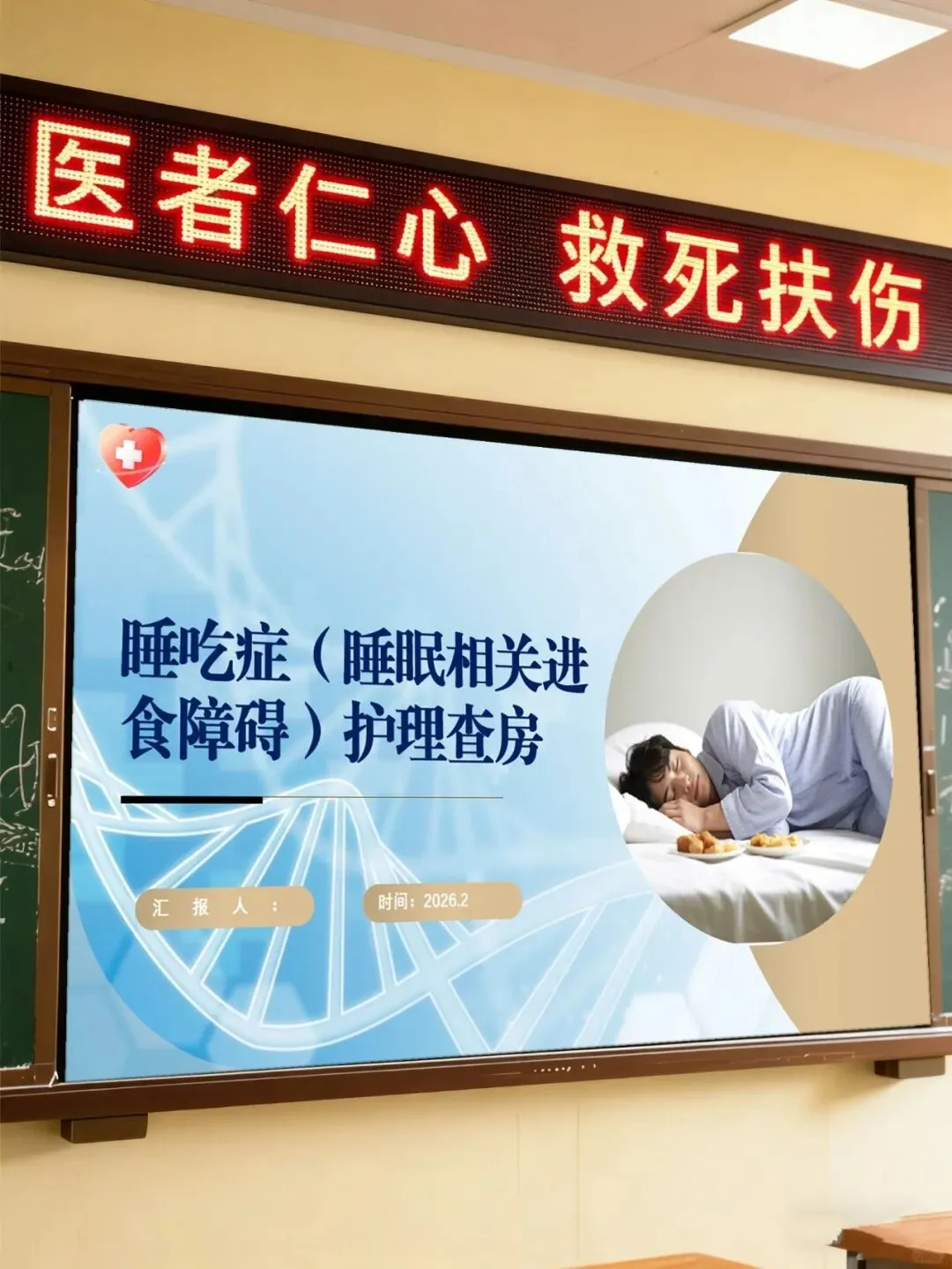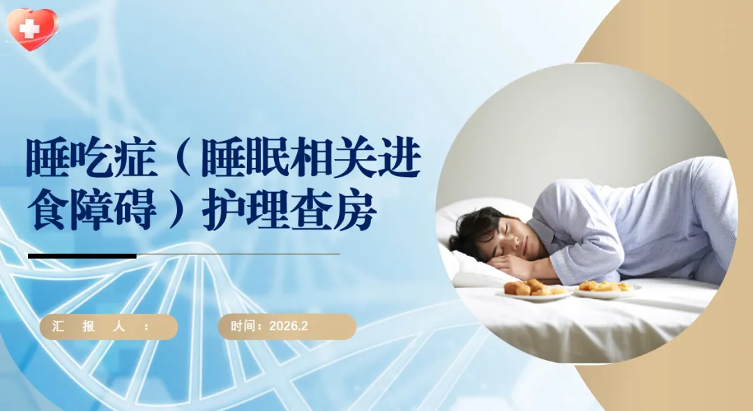 各位同事,今天咱们聚焦睡吃症开展护理查房,不是单纯讲理论,而是想和大家一起捋捋这类特殊睡眠障碍的护理实操要点,把临床里的识别、评估、干预难点拆透,让咱们后续照护这类患者时,能精准发力、守住安全底线。