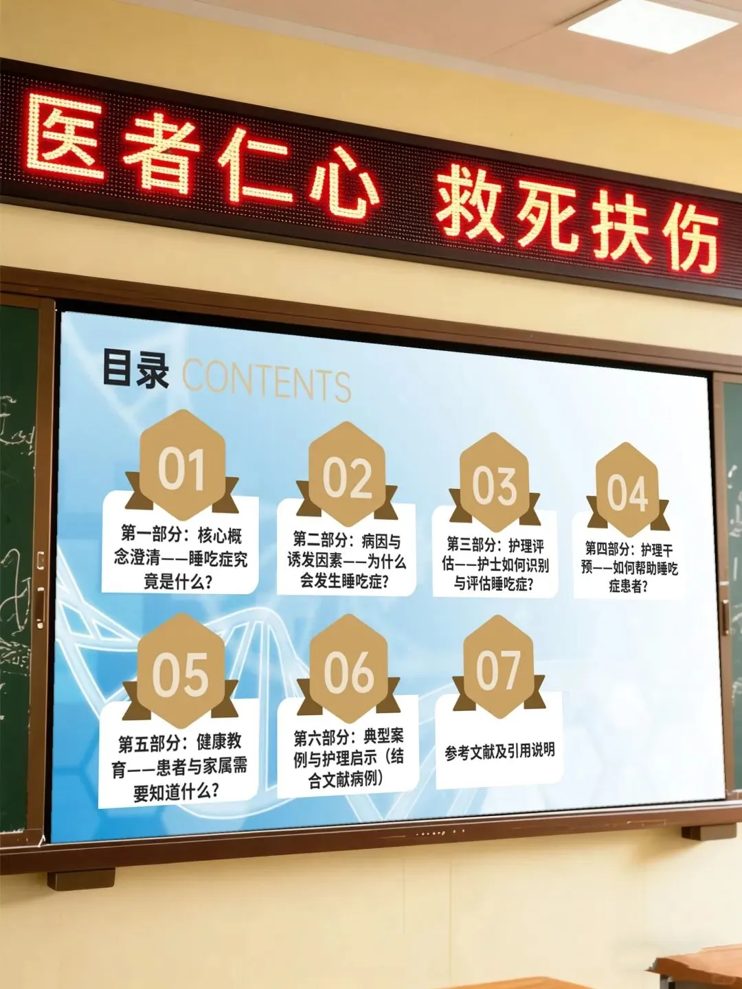 这类特殊护理工作,考验的是咱们的细心和专业度。只要咱们把每个护理环节做扎实,把每个评估要点摸清楚,心往一处想、劲往一处使,用专业的护理方法帮患者摆脱睡吃症的困扰,就能真正守护好他们的睡眠健康和生命安全。今天的查房就到这里,后续大家在临床照护中有任何问题,咱们随时交流、一起探讨解决。