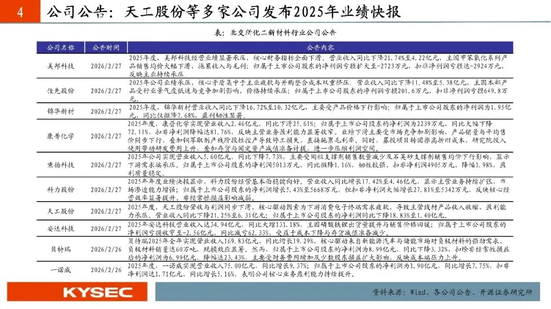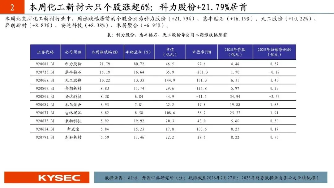 · 本周开源北交所化工新材行业涨跌幅为+2.60%