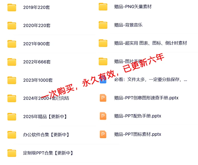 如果您正在为制作PPT而犯愁,那么我们的PPT资料合集一定能帮助您!这份合集已经更新了七年,涵盖汇报总结、定制级、欧美高端、创意简约、项目策划、高级感、温柔风、小确幸、拟态风、几何、喜庆商务、马卡龙等六十个大类,共计3000+多套模板【还在更新中,每年更新不少于1000套最新精品PPT】!
