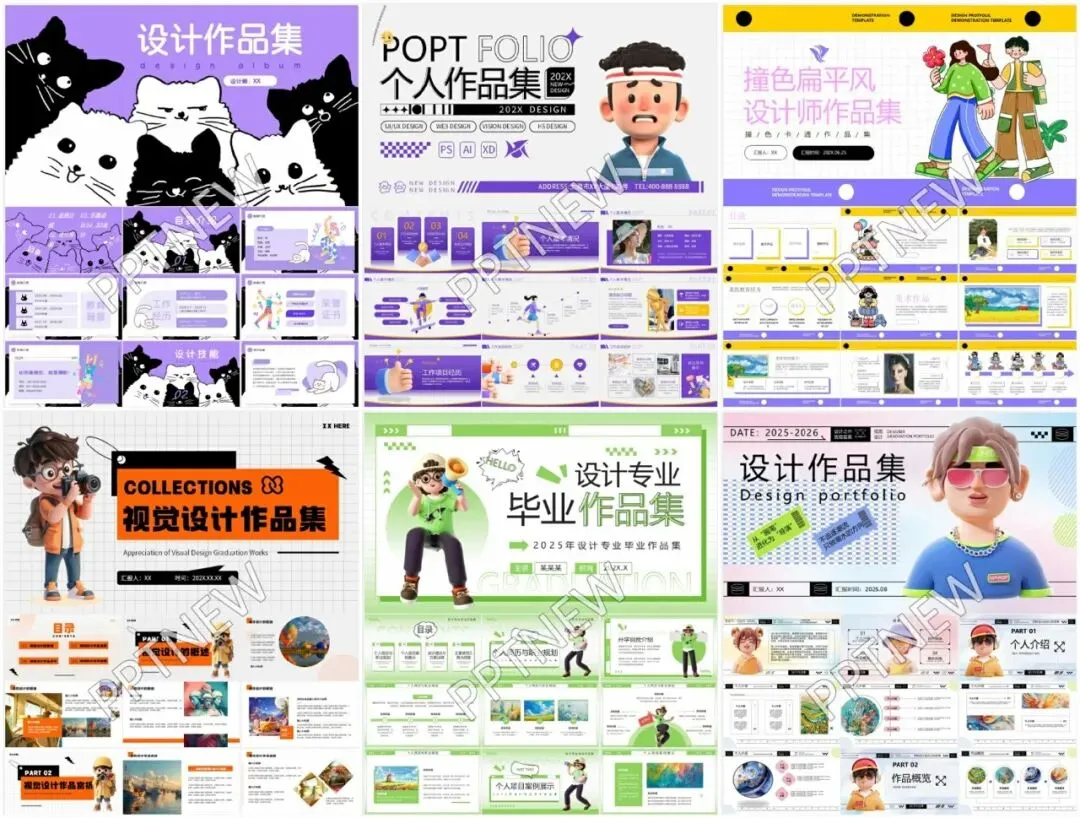 不管你是设计师、创意人,还是学生党,这套模板都能帮你把作品集做得高大上。每一套的设计风格都不一样,有简约风、复古风、科技感满满的,还有那种超有艺术感的,总有一款适合你。