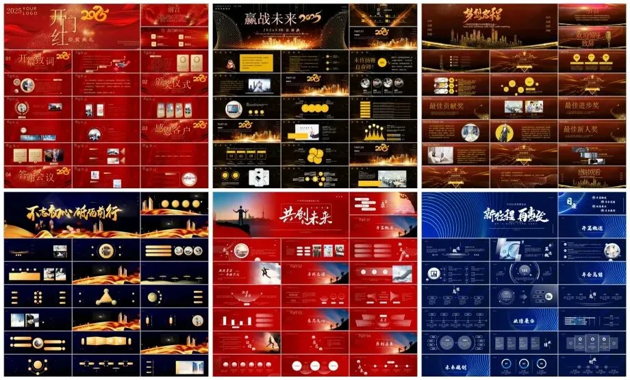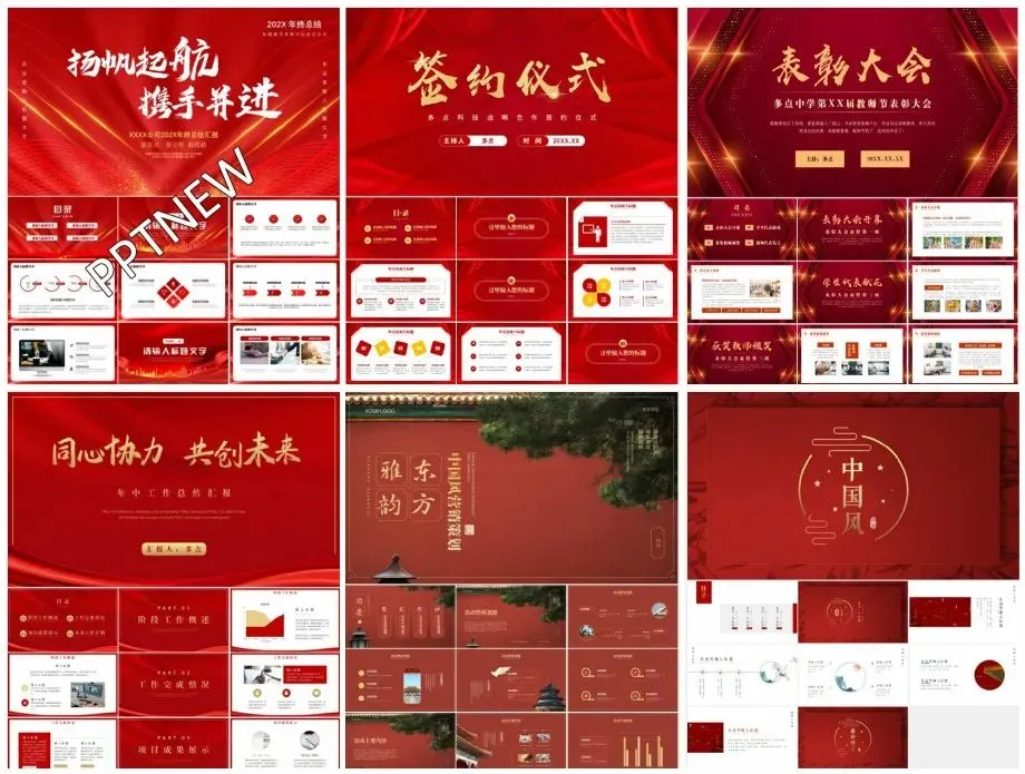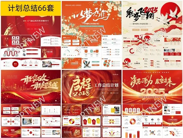 60套红色宽屏工作总结PPT模板,3:2的黄金比例设计,让您的演示更加专业和引人注目。