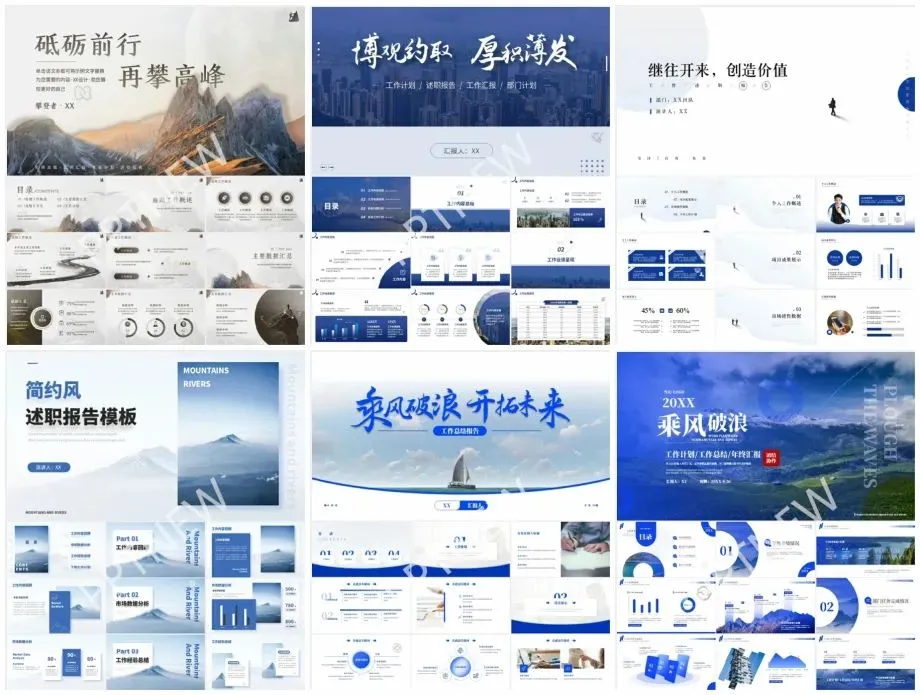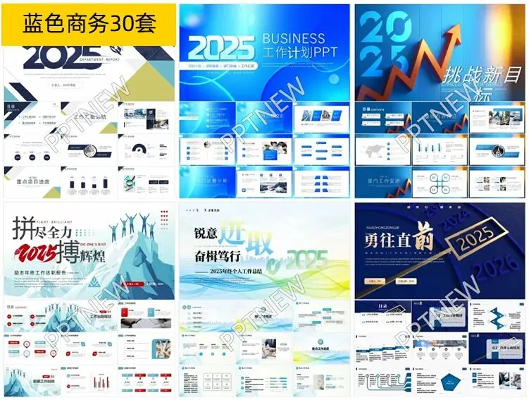 这30套蓝色系商务PPT模板,以经典蓝色为主色调,彰显出专业与稳重。每套模板均设计精良,布局清晰,适用于各种商务场合。