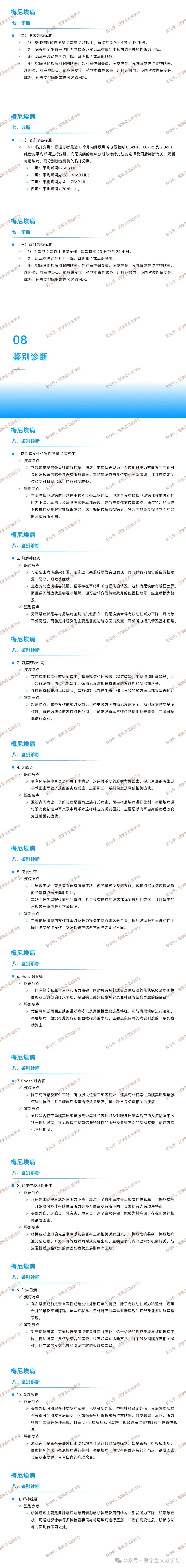 与多种疾病鉴别,如良性阵发性位置性眩晕(耳石症)、前庭神经炎、前庭药物中毒、迷路炎、突发性聋、Hunt 综合征、Cogan 综合征、迟发性膜迷路积水、外淋巴瘘、头部损伤、听神经瘤、前半规管裂综合征等,主要依据各疾病特点、病史、症状表现、检查结果等方面进行区分。