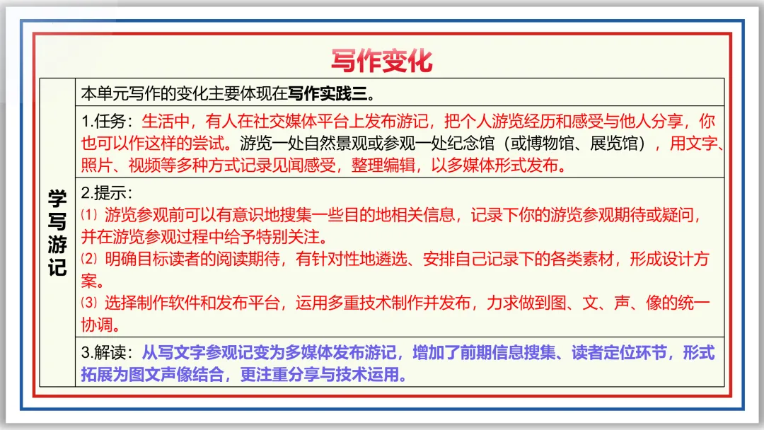 回味:新版八下一单元作文 导写+升格+展评