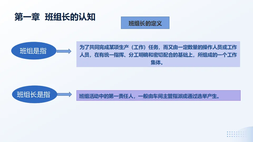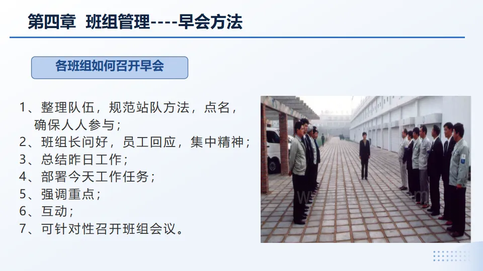 。班组长通常由车间主管直接指派,或者通过班组内部选举产生。但无论是哪种方式产生,班组长都必须是这个团队天然的核心。