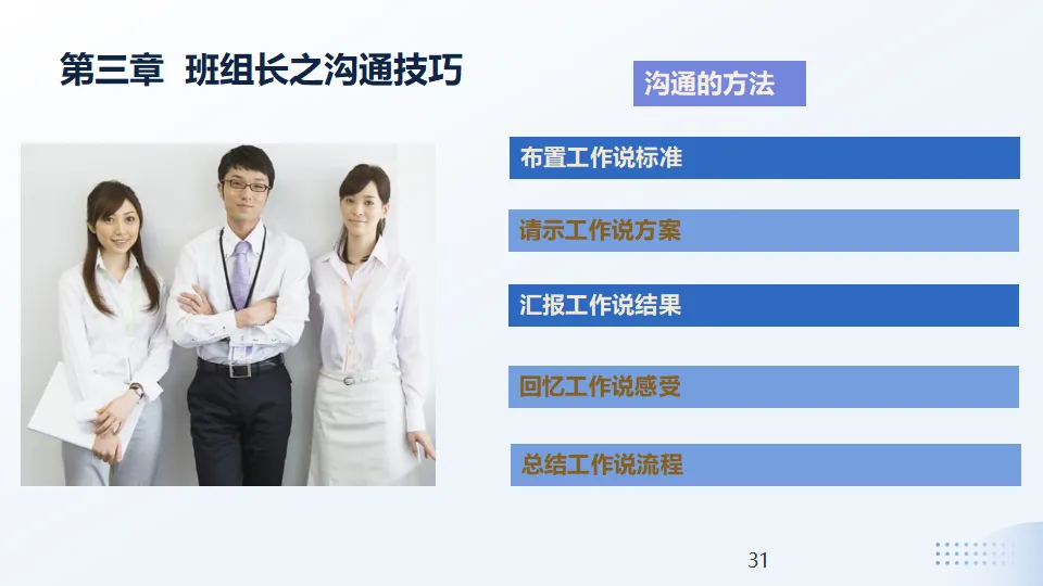 这时候,你不是代表自己,而是代表整个班组。你要反映的是班组的实际情况、员工的合理诉求,同时也要为上级分忧,提供解决方案,而不仅仅是抛问题。