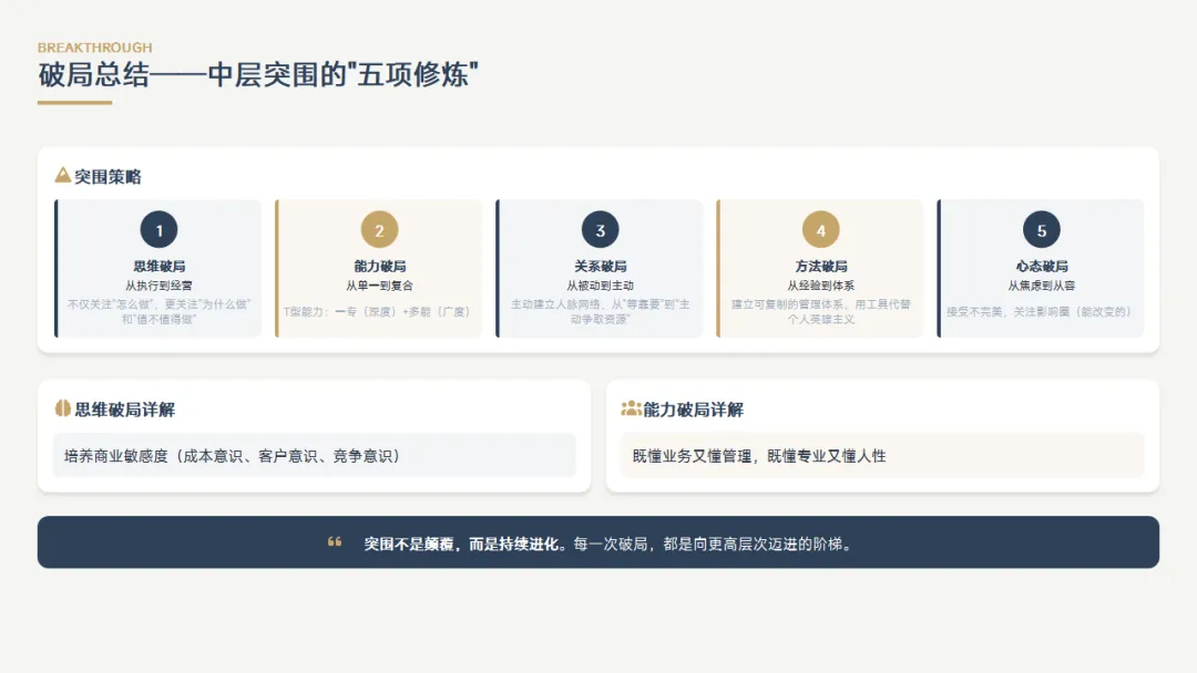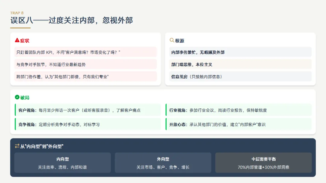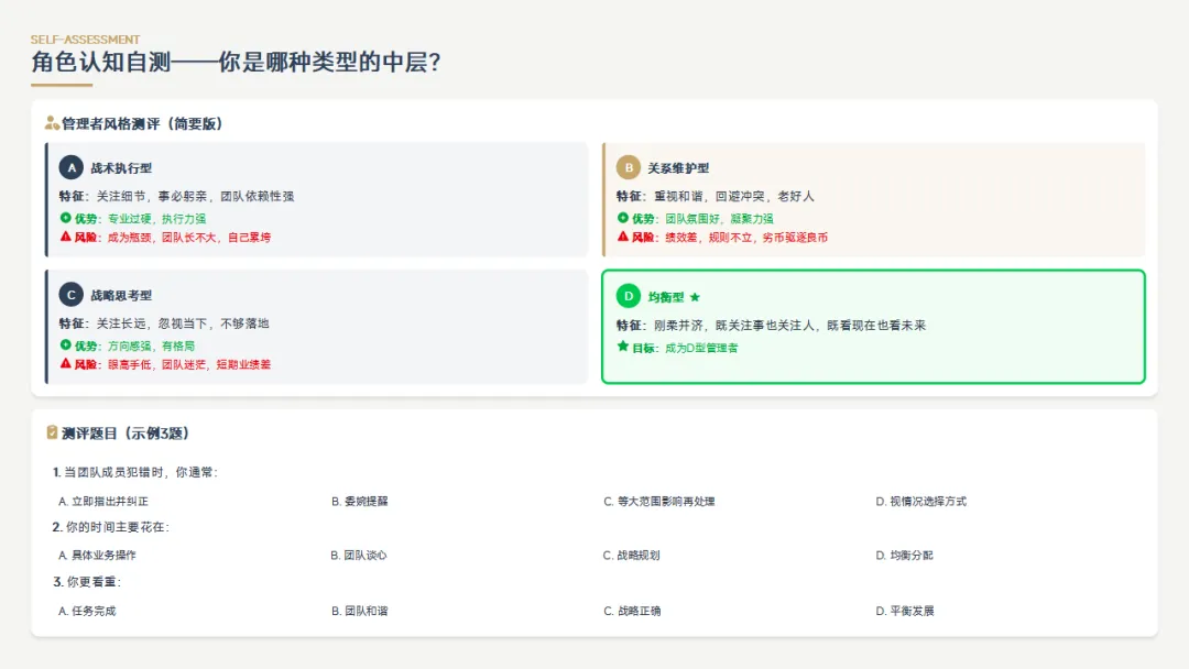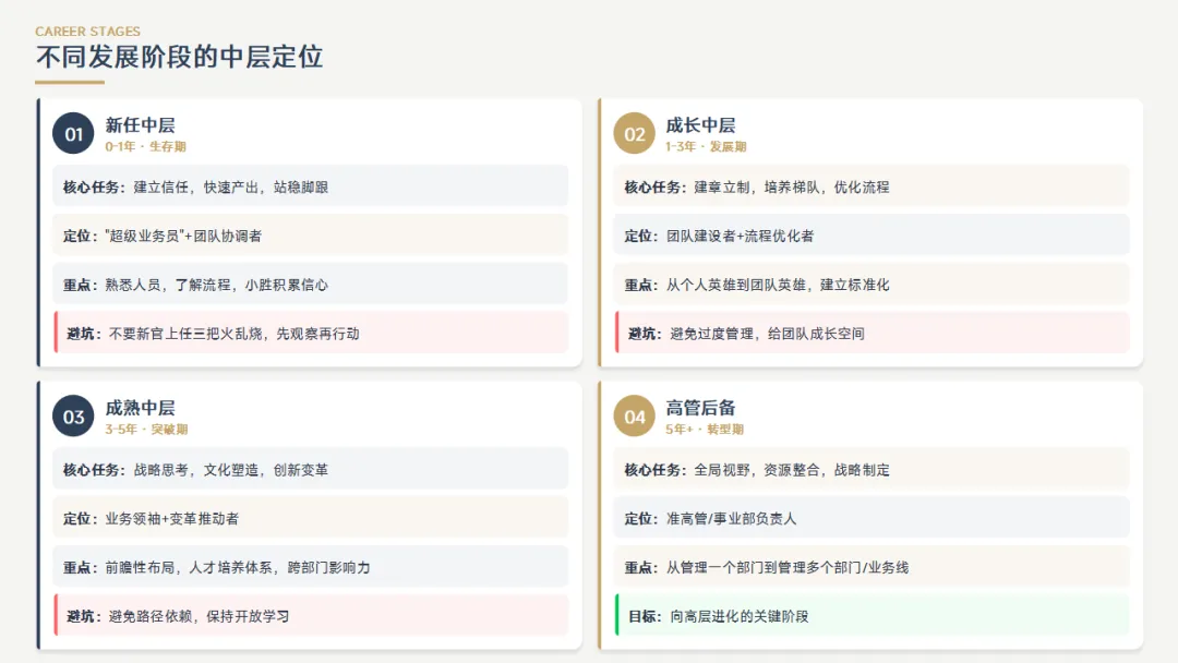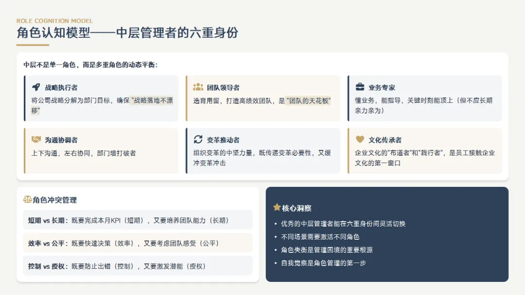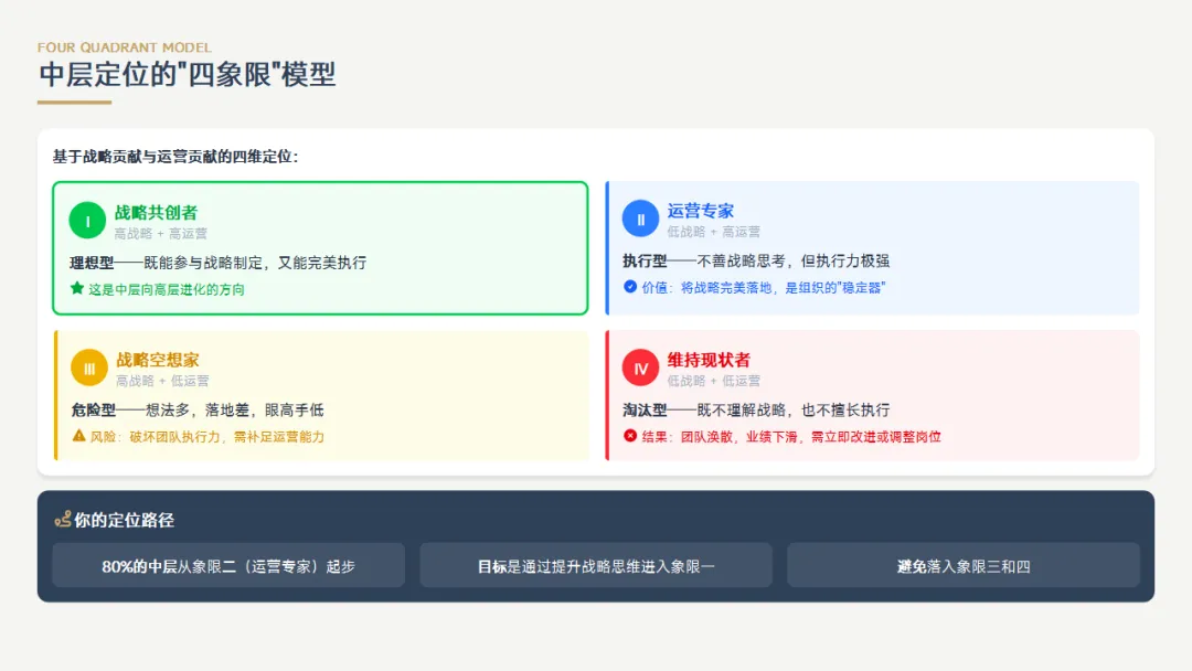 。国内调研显示,78%的中层认为自己"战略地位模糊",既非决策层也非执行层。这种身份认同的缺失,是很多中层焦虑的根源。