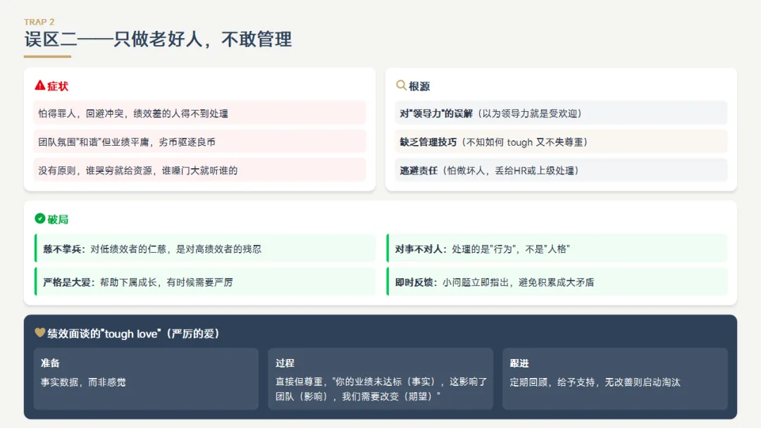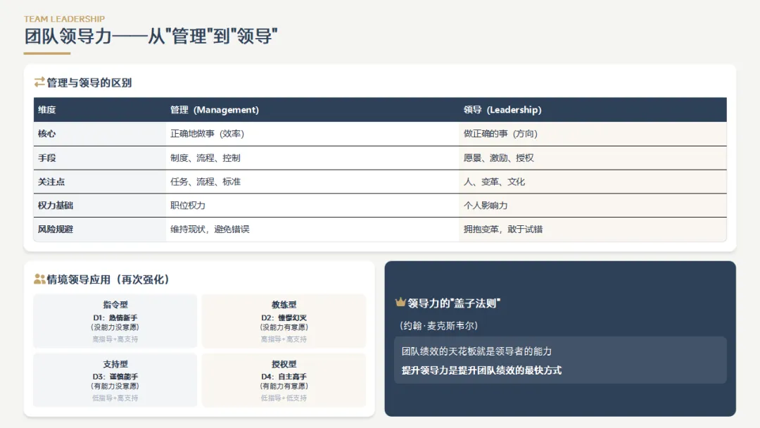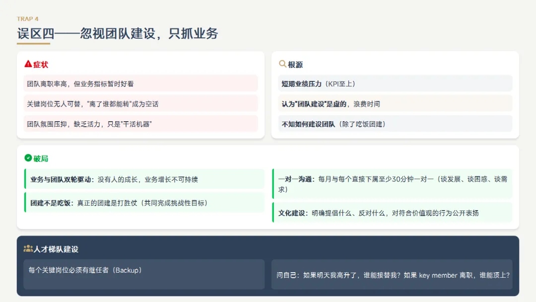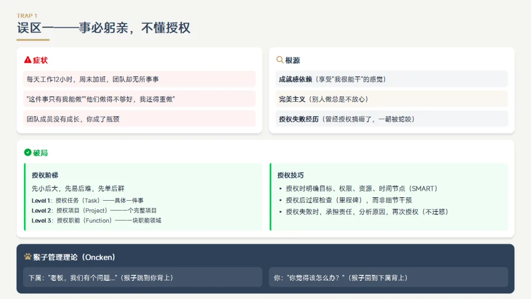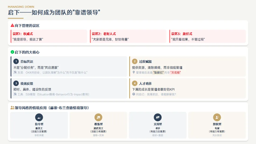 懂业务,能指导,关键时刻能顶上。但注意,"能顶上"不等于"长期亲力亲为"。你应该在关键节点出手,而不是天天做下属该做的事。