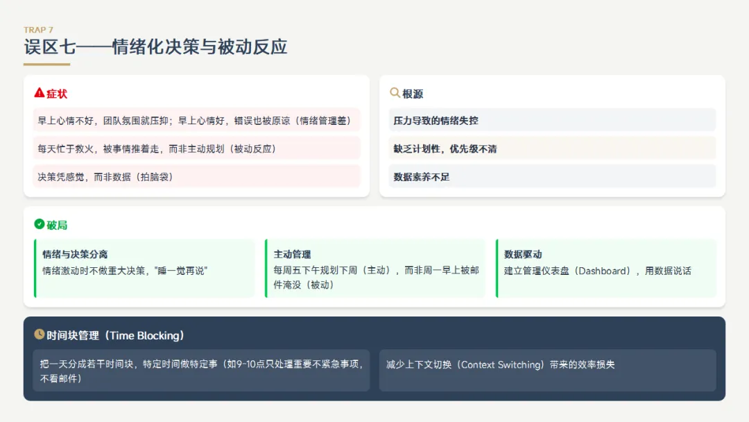 很多朋友是业务骨干提拔上来的,过去是"自己做",现在是"让人做";过去是"技术专家",现在是"管理通才"。这种转变是极其痛苦的,就像让一位优秀的钢琴家去指挥交响乐团,技能完全不同。