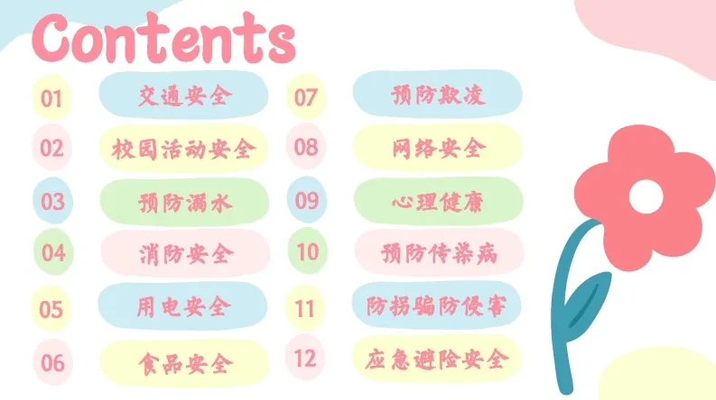 里面会从校园、交通、食品、校外活动这些日常方面,把安全注意事项和自我保护方法讲明白,还会教大家应对突发危险的办法,整体内容实用,贴合学生日常,还配套了对应的讲稿,老师上课直接用就行。