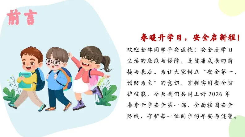 >【通用安全PPT】开学安全主题教育班会:春暖开学日,安全启新程