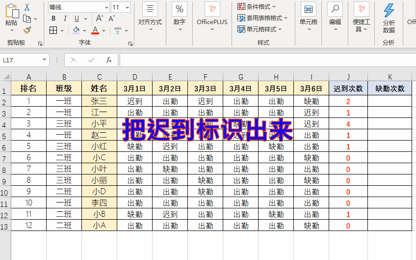 顺便复习一个知识点,大家还记得如何把【迟到】或【缺勤】