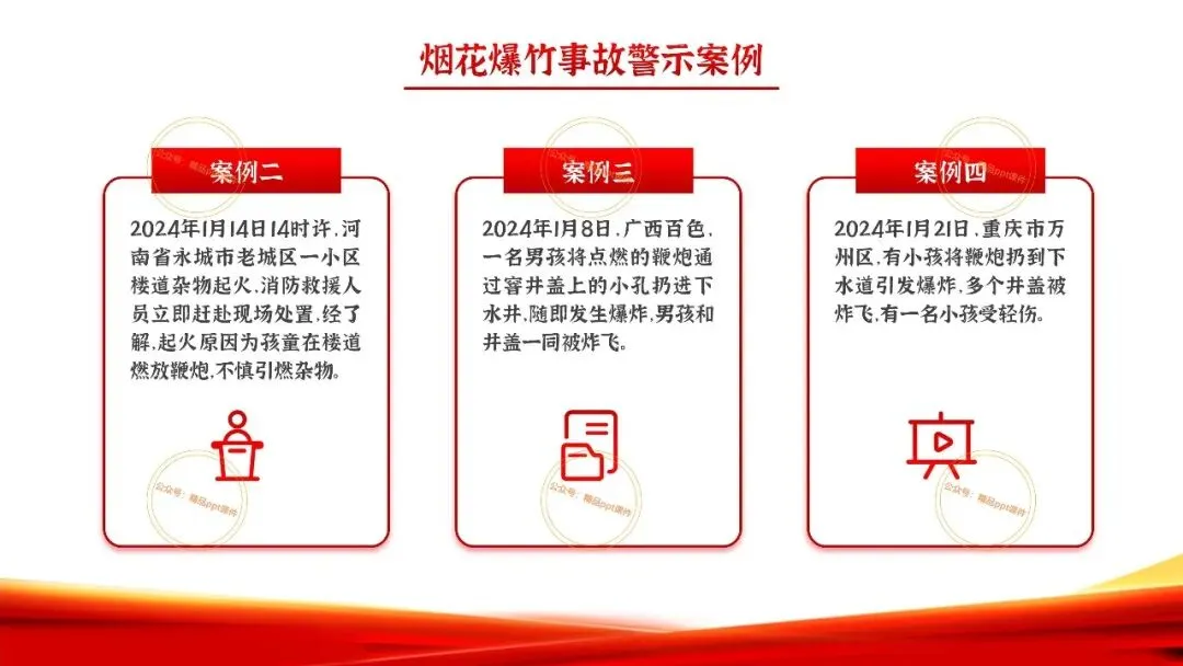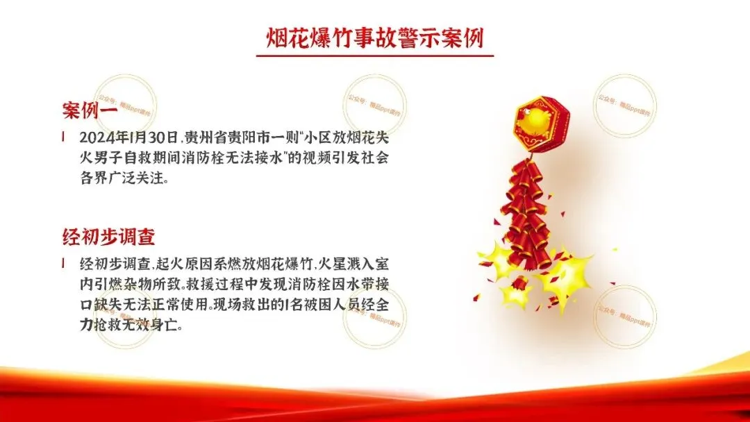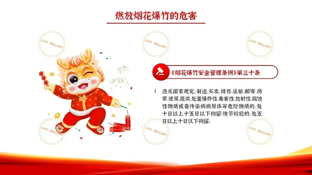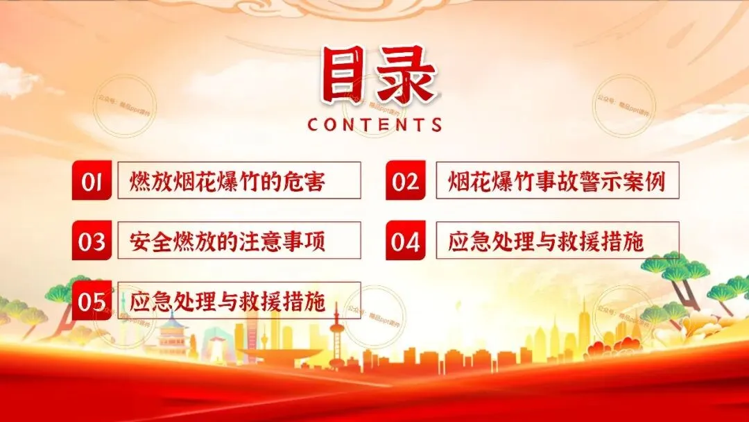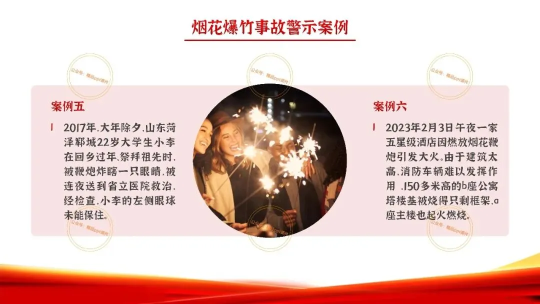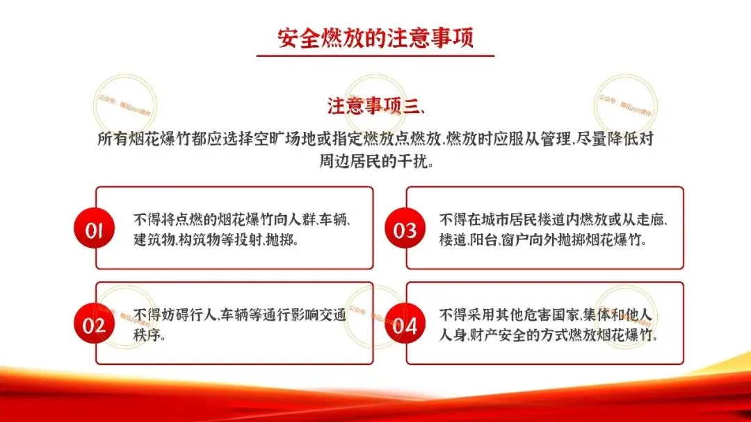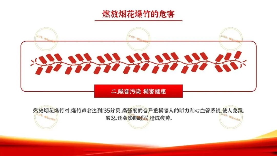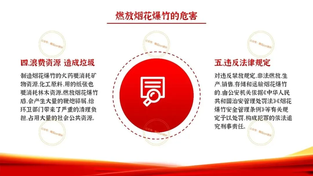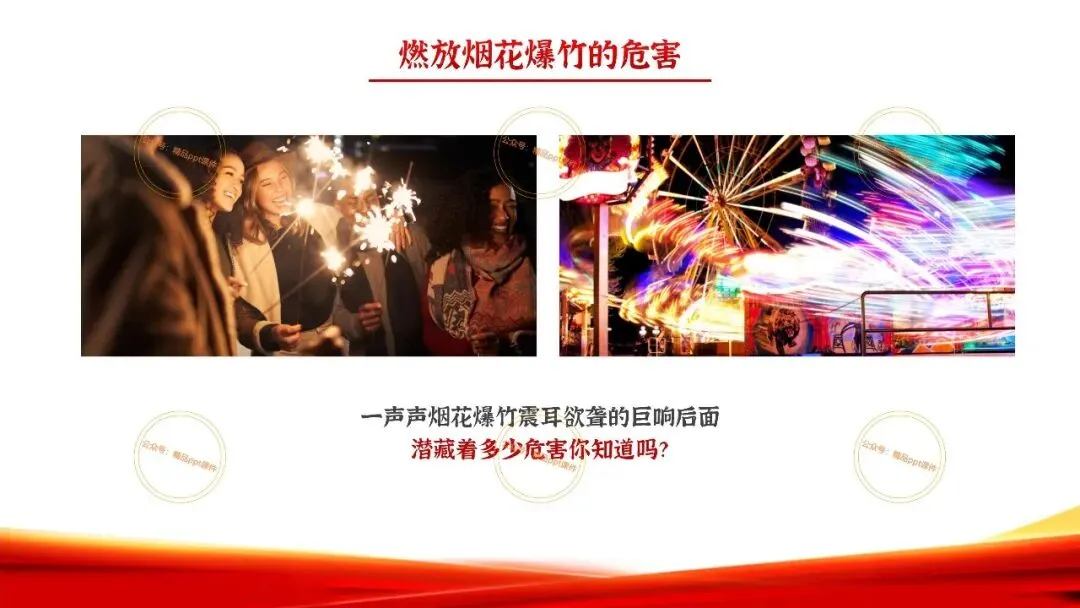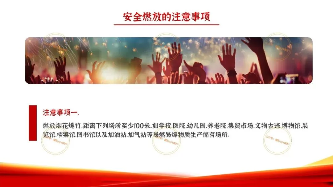 2、本公众号成立的初衷是为广大ppt使用者提升工作效率,所发布的课件资源仅供学习交流禁止用于商业用途,有偿所得用来维系公众号运营所支出的人工成本,性质为买家友情赞助后获取的信息差而非售卖资源的费用。同意此声明后即可下载本期禁止燃放烟花炮竹安全教育宣传ppt课件。如有侵犯您的权利,请联系小沐老师。