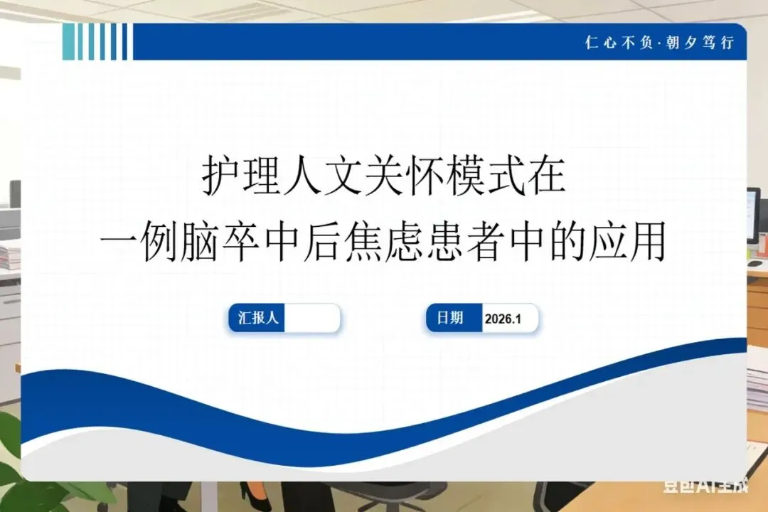 PPT模板-护理人文关怀模式在一例脑卒中后焦虑患者中的应用