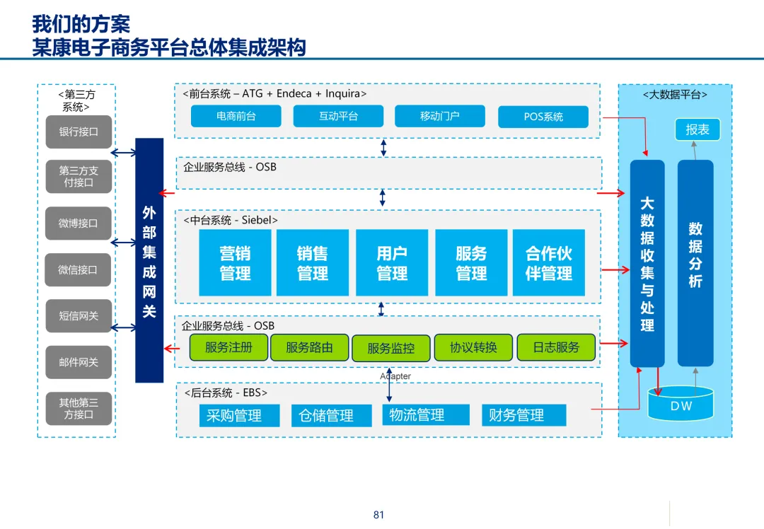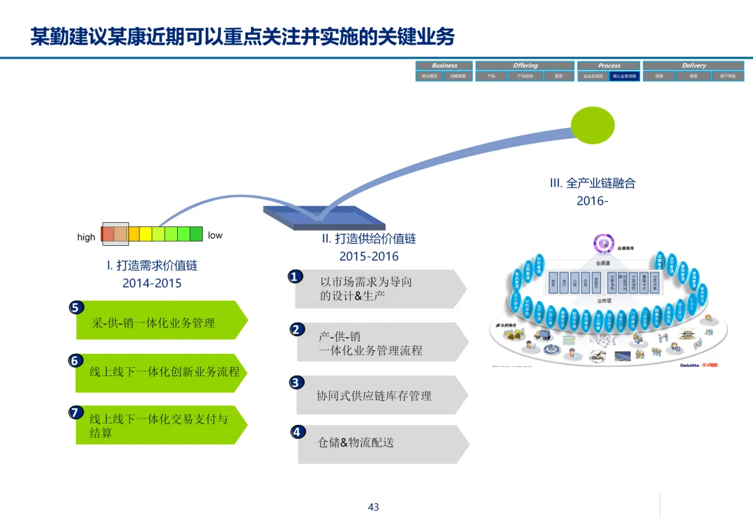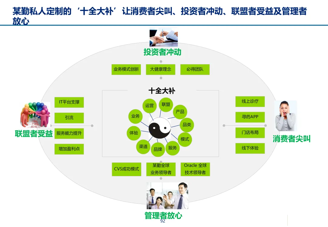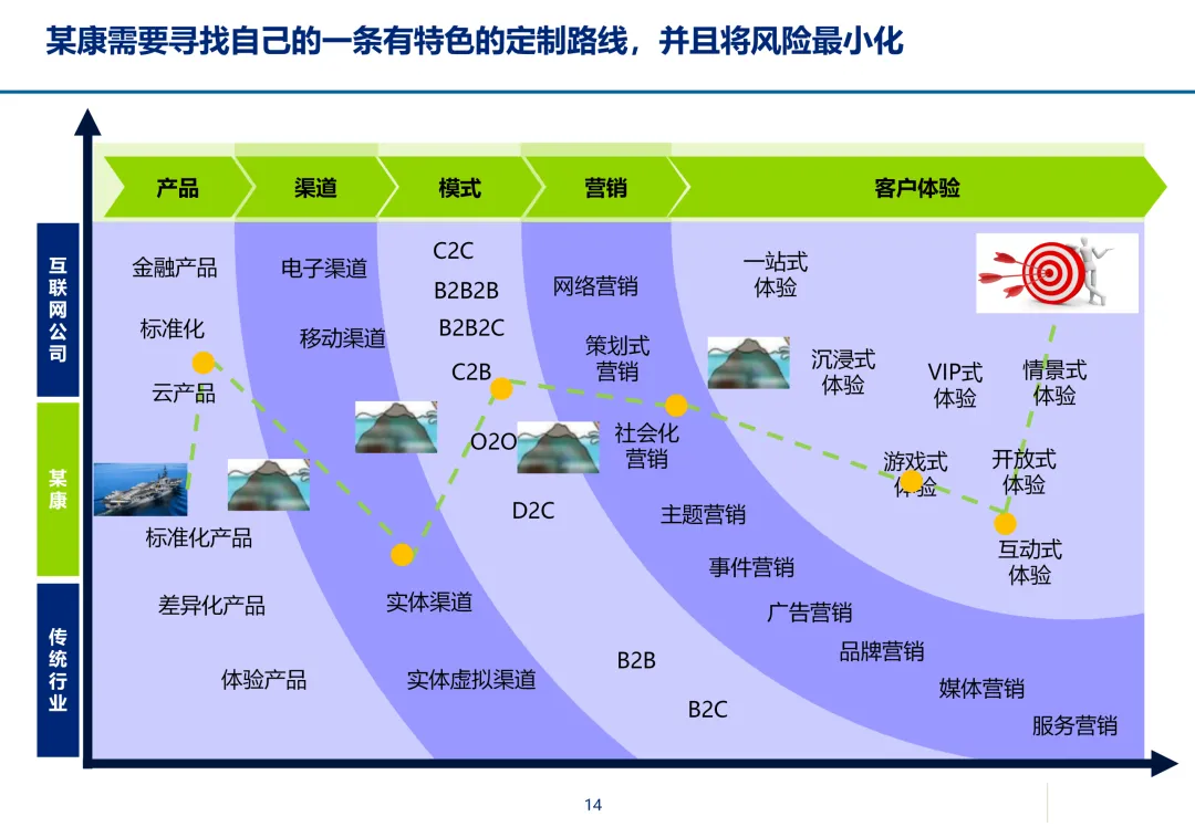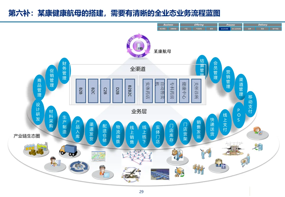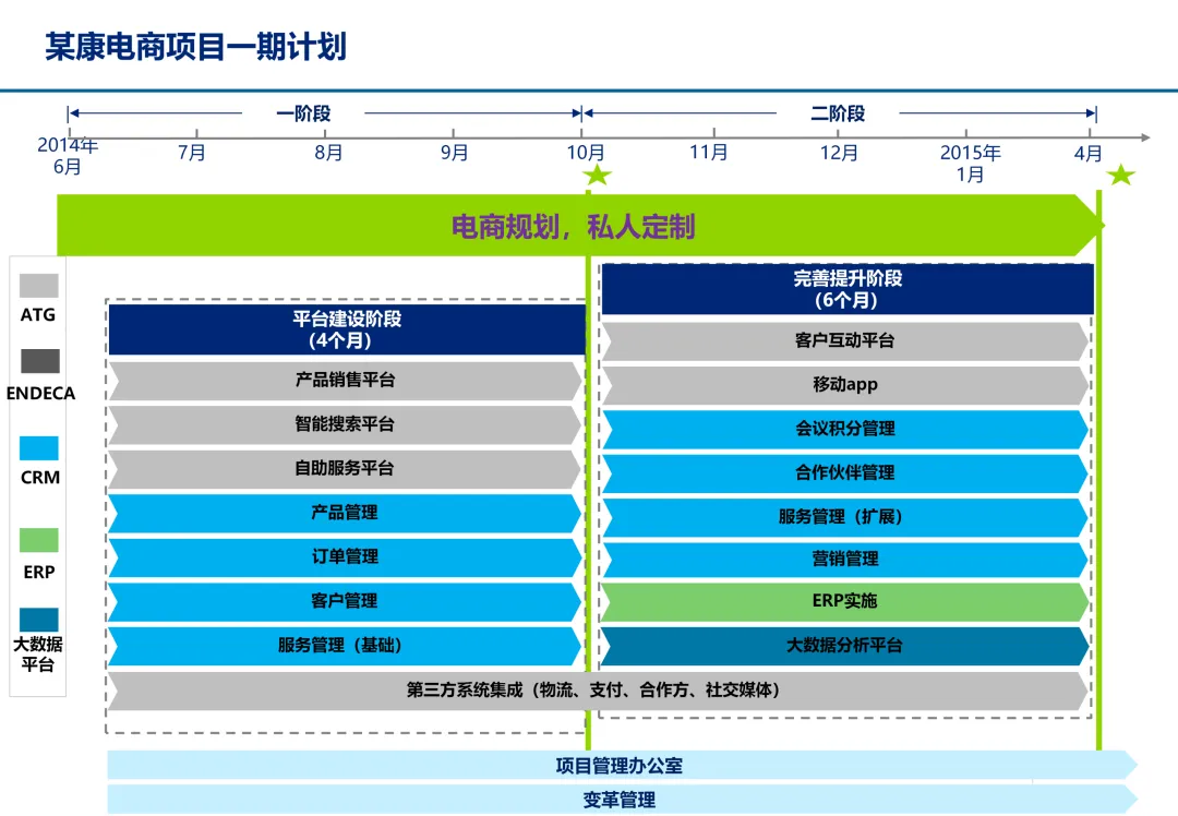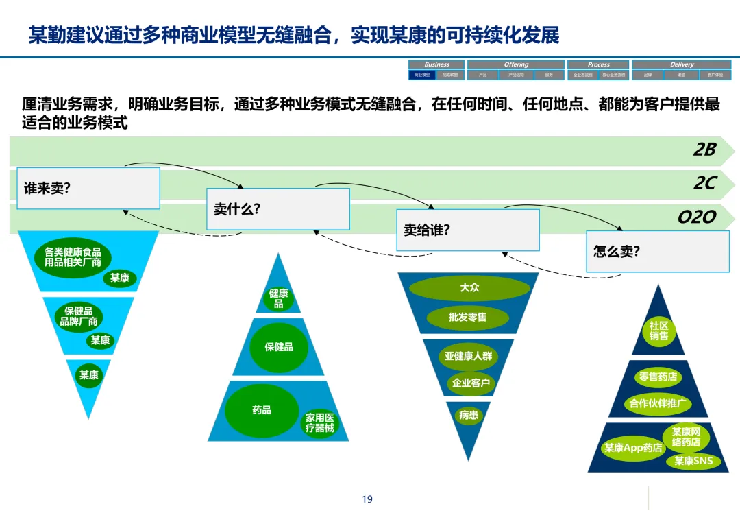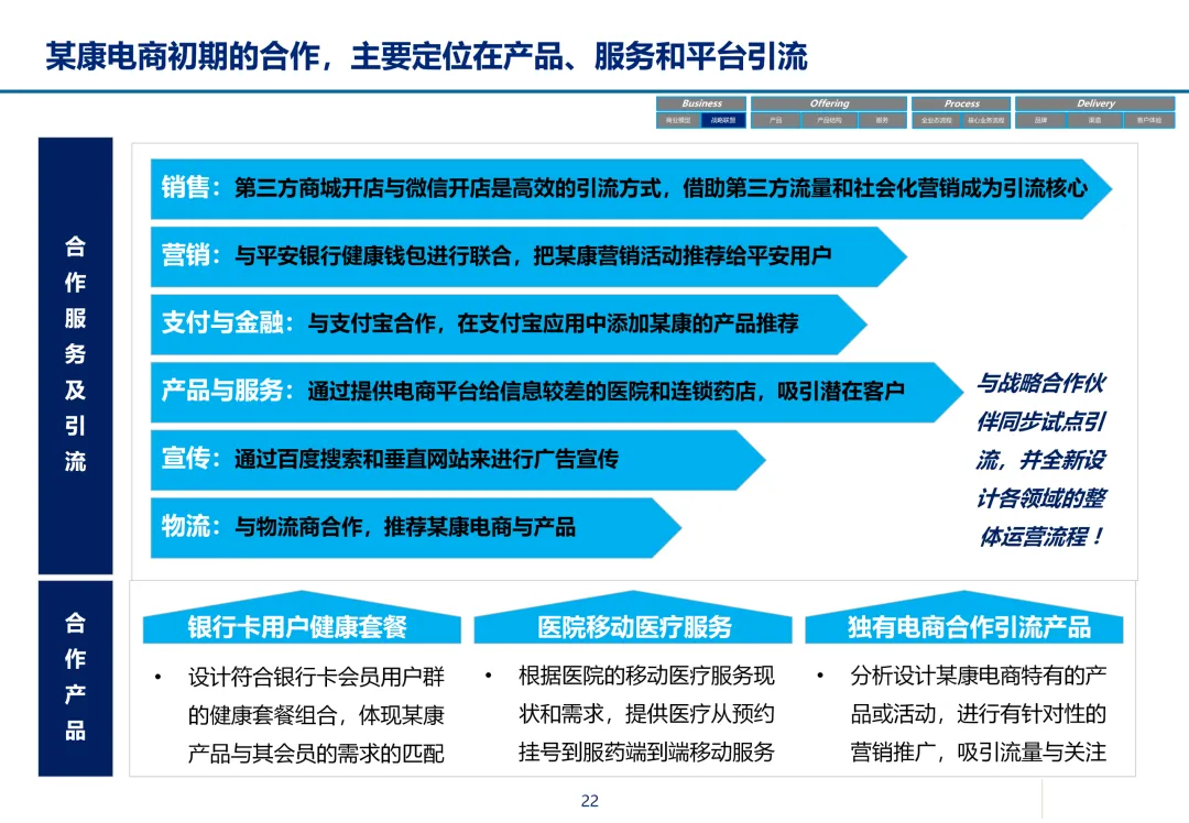 声明:本文内容来源于公众号“数字化战略咨询”,版权归原作者所有(如侵权,扫描上方二维码联系删除)。风陵渡进行深度解读,欢迎大家转载分享。最近在复盘案例时,重新翻出了一份极具代表性的传统企业数字化转型方案——某康(必康)药业的电商平台规划。尽管这份PPT距今有些年头,里面的技术架构(如Oracle ATG)也已不是市场最热门的选项,但剥开技术的外衣,其内在的转型逻辑、业务设计和方法论,对于今天任何想要进行数字化转型的传统企业来说,依然是“一字千金”的教科书。今天,我想以一个数字化顾问的视角,带大家深度拆解这份所谓的“十全大补”方案,聊聊我们能从中学到什么实用的干货。一、 为什么是“十全大补”?—— 转型不是“头痛医头”很多企业做数字化转型,容易犯一个错误:看别人做电商,我也做个商城;看别人做APP,我也上个APP。结果就是建了一堆烟囱,业务却跑不起来。这份方案的高明之处,在于它开篇就定了一个基调:“私人定制:十全大补”。 它把企业转型比作一个人需要全面调理,而不是只吃一片止痛药。这“十补”涵盖了商业模式、产品、服务、流程、品牌、渠道、体验、IT等方方面面。它告诉我们一个朴素的真理:数字化转型是一把手工程,是战略级的重构,不是IT部门能独立完成的“网站改版”。 作为数字化顾问,我们在推动项目时,如果不能让企业高层理解这种“系统性”的变革,项目大概率会在各部门的扯皮中夭折。二、 最值钱的“两补”:商业模式与客户体验在“十全大补”中,我认为最有价值、最能体现咨询功底的是“第一补”和“第十补”。方案没有只盯着自建B2C,而是提出了一个非常务实的组合拳:自建B2C + 入驻天猫 + 微信药店 + 线下并购/O2O。对数字化顾问的启示:不要为了追求技术的“纯自研”或模式的“高大上”而忽略现实。对于传统企业,流量在哪,我们就应该去哪。自建平台是“根据地”,入驻第三方是“前沿阵地”,线下门店是“后勤补给站”。这种多维度的商业模型,既解决了生存问题(销售),又解决了发展问题(私域流量),是真正的“稳健打法”。方案里引用了一个“茶叶”的例子:产品 -> 商品 -> 服务 -> 体验,价格指数级上升。这个例子太经典了。对数字化顾问的启示:我们经常和企业讲“以客户为中心”,但怎么落地?这个例子给出了路径。对于医药行业,“可信、方便、无约束” 这七个字直击痛点。可信:不仅是正品,更是通过个人病历、药师咨询建立的专业信任。方便:不仅是送货上门,更是全渠道的无缝切换、一键购药。无约束:不仅是积分通用,更是通过大数据预测你的健康需求,服务在你开口之前。数字化不是炫技,而是要通过技术手段,消除客户在购买决策过程中的每一个疑虑和不便。这才是体验设计的核心。三、 从“十全大补”中提炼的“数字化转型三问”基于这份方案,我认为任何传统企业在启动数字化项目前,都必须想清楚三个问题:第一问:我们的“航行目标”是什么?是卖货,还是服务用户?某康的目标很清晰,不是简单地把药从线下搬到线上,而是打造“健康电商航母”,服务上亿人。这意味着它的系统架构、数据模型、业务流程,都要围绕“个人健康”这个长周期来设计,而不是围绕“单次药品交易”这个短行为。目标是服务的,最终会做成平台;目标是卖货的,最终只是个网店。第二问:我们的“航海图”如何规划?是一步到位,还是小步快跑?方案给出了清晰的三步走:平台建设期(建能力)-> 完善提升期(拓渠道)-> 产业链整合期(建生态)。这是非常经典的“由内而外、由点到面”的实施路径。第一阶段:先把线上B2C跑通,哪怕有人工介入,关键是验证模式。第二阶段:打通ERP和电商,实现自动化,并开始接入各种第三方,获取流量。这种分阶段的演进,既控制了投资风险,也让团队在每个阶段都有明确的里程碑,是项目成功的关键。第三问:我们的“舰载武器”如何选型?是追求先进,还是追求适配?方案在IT架构部分,非常务实。它推荐了Oracle成熟的套装软件,并给出了详细的物理部署和资源估算。对数字化顾问的启示:不要为了简历好看而盲目推崇开源或最新的技术。对于传统企业,特别是医药这种对数据一致性、事务处理要求极高的行业,成熟、稳定、可扩展是第一位的。在“双11”大促时能扛住压力,比用了某个最新的国产数据库更实际。方案中提到的 “Partition Everything, Cache Everything, Async Everything” 这四大设计原则,是所有高并发系统架构的金科玉律,至今不过时。【未完...】