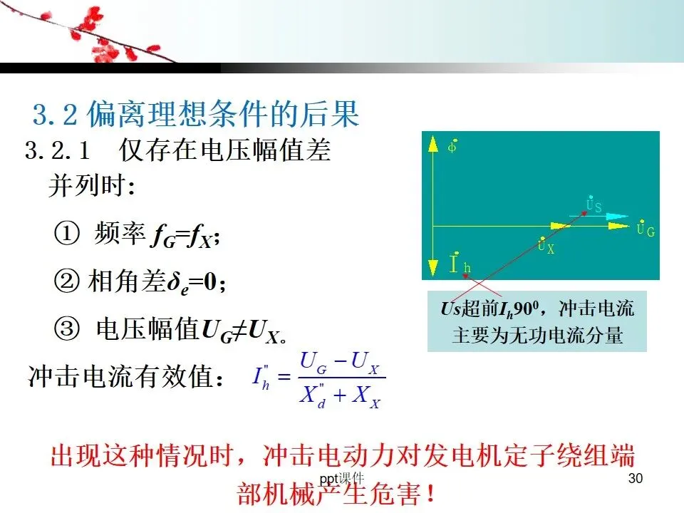 (1)并列断路器合闸时,冲击电流应尽可能的小,其瞬时最大值一般不超过1~2倍的额定电流。