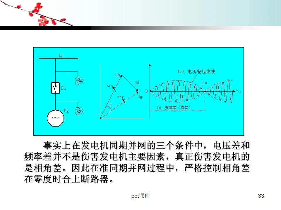 (2)发电机组并入电网后,应能迅速进入同步运行状态,其暂态过程要短,以减少对电力系统的扰动。