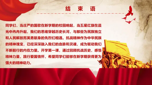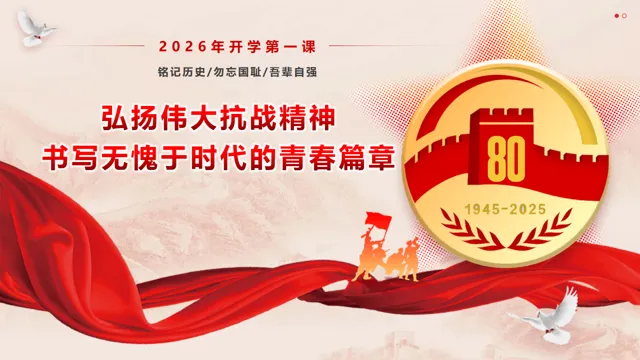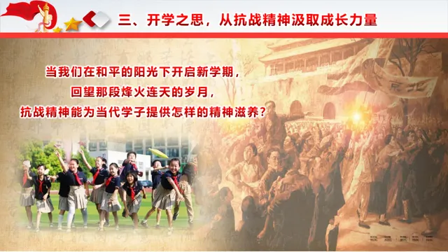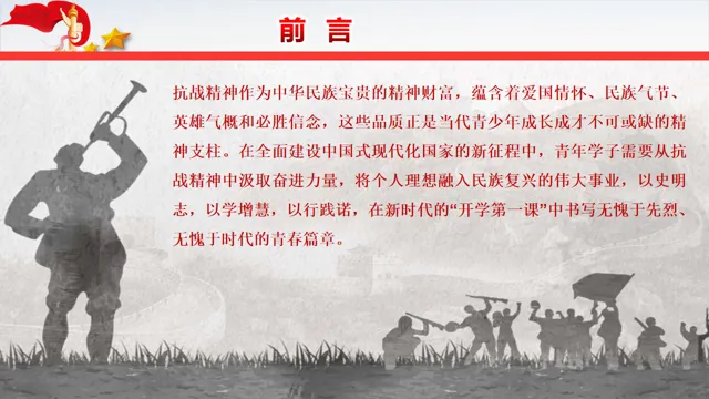 >【PPT+讲稿】学校开学党课:弘扬伟大抗战精神,书写无愧于时代的青春篇章(4800字,37张)