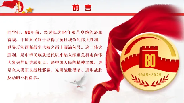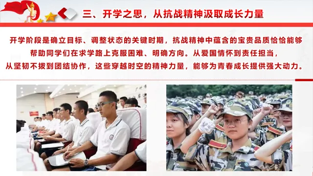 【PPT+讲稿】学校开学党课:弘扬伟大抗战精神,书写无愧于时代的青春篇章(4800字,37张)