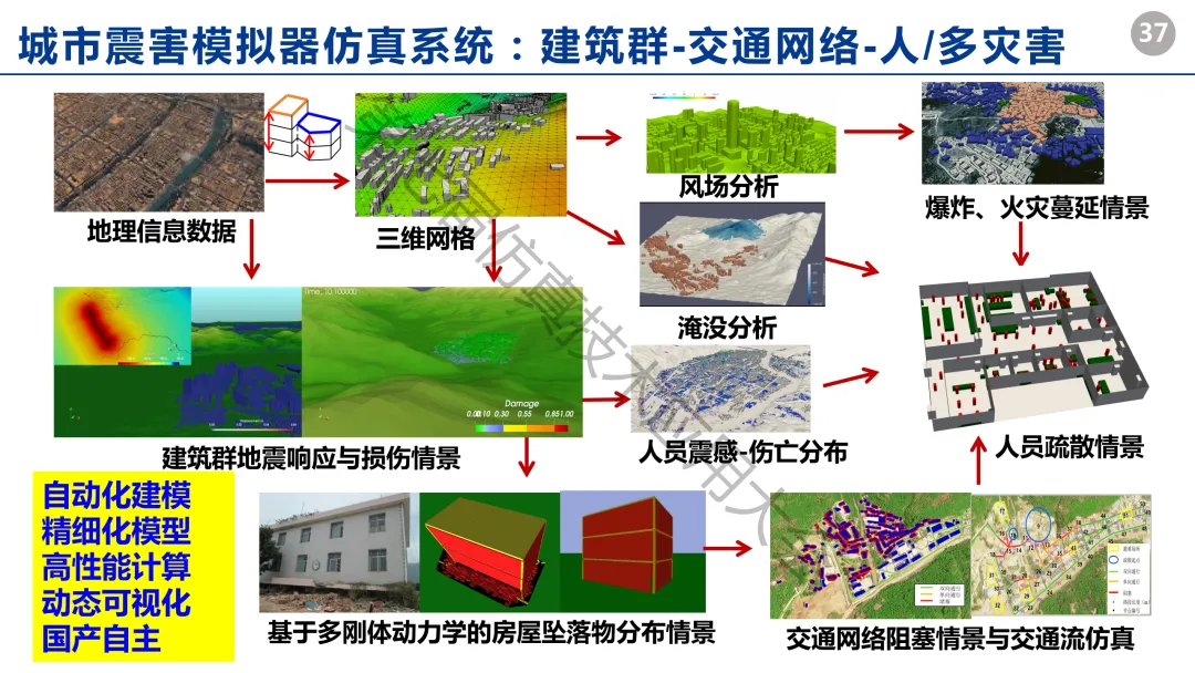 2025年12月13日-14日,第七届中国仿真技术应用大会在浙江省宁波市成功举行,本次大会主题为“AI 赋能与数字孪生:驱动高端装备智能设计革新”,大会分为开幕式、主论坛、8个分论坛、专业展览、参观活动等。100多位专家分享了最新的科研成果和学术观点。“仿真生态圈”持续刊发部分专家的演讲PPT,推动技术交流、产业合作,促进行业生态建设。专家简介:林旭川,中国地震局工程力学研究所研究员、博导、城市综合防灾研究中心主任,入选国家级青年人才计划,享受国务院政府特殊津贴。兼任中国地震局科学技术委员会委员、中国城市科学研究会理事等职。长期从事城市地震灾害数字仿真、结构工程抗震等领域研究。发表期刊论文130余篇,累计获得国际国内优秀论文奖、高被引论文14篇次。曾获国家科技进步一等奖1项、省部级一等奖2项、中国灾害防御协会“灾害防御科学技术奖”青年科学奖1项;开发了具有完全自主知识产权的城市震害模拟器仿真系统,实现了大规模建筑群的快速自动数字化建模,建立了城市层次建筑群破坏-坠落物堆积-人员伤亡-交通网络-人员疏散的灾害链集成仿真与地震破坏-风场分析-火灾蔓延等多灾害耦合分析方法及数值计算平台,在国内外30余个单位的城市防灾规划、巨灾保险、地震应急等工作中推广应用。