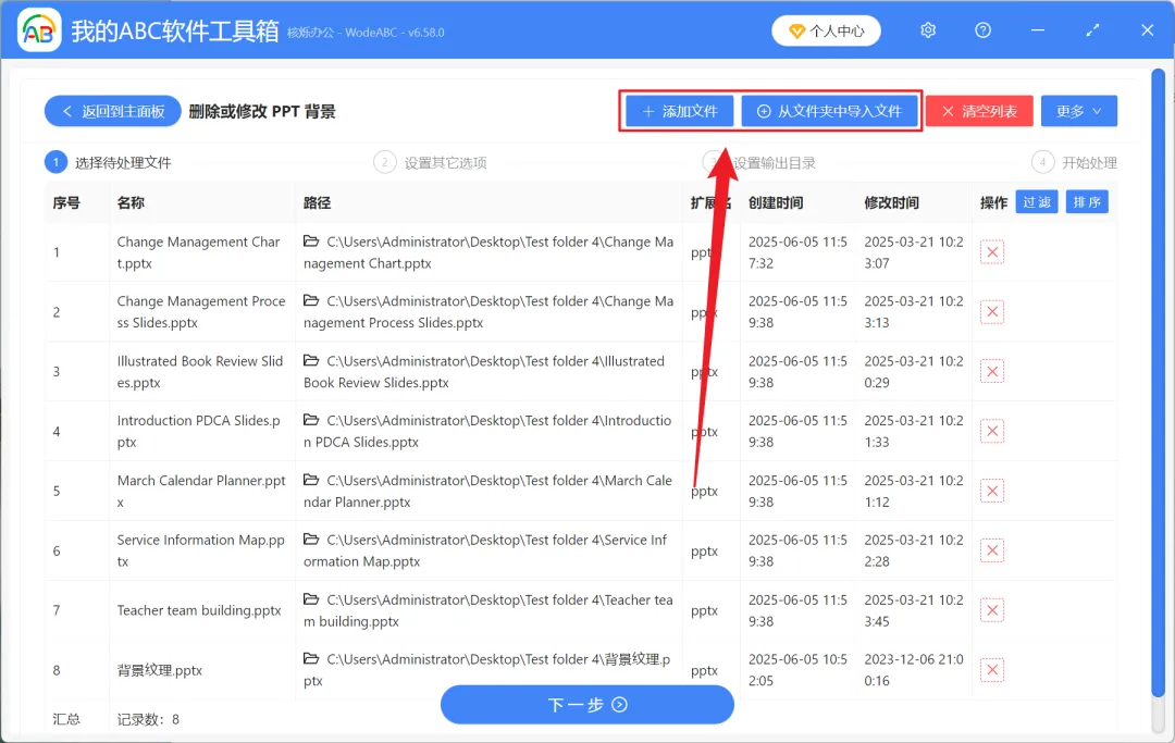 【从文件夹中导入文件】将文件夹中所有的 PPT 文件导入。