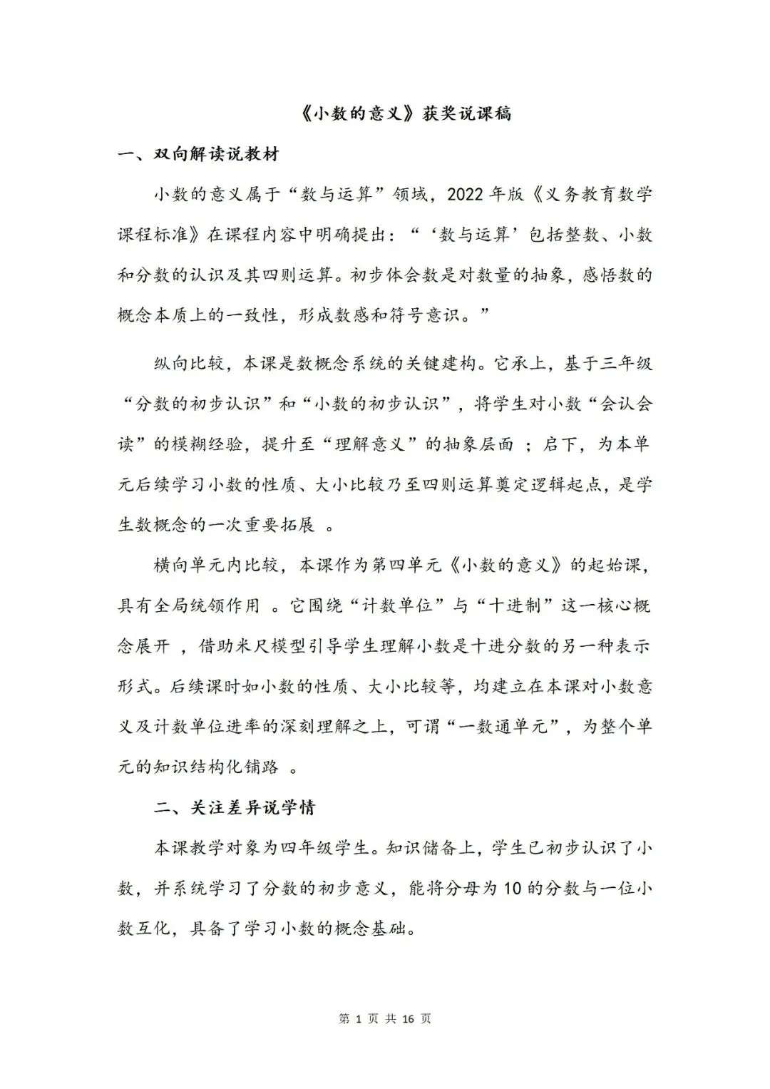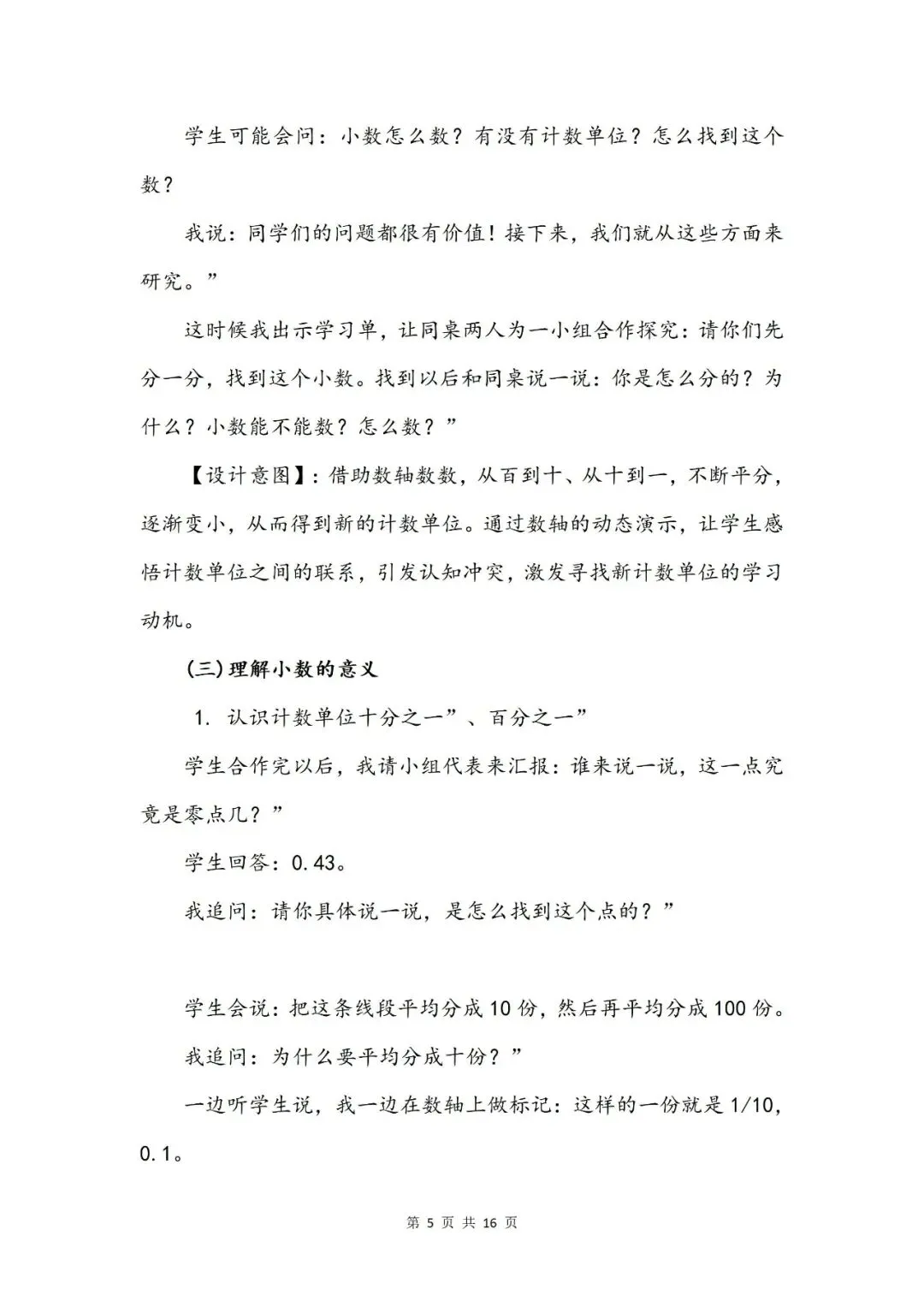 >数学《小数的意义》一等奖说课(说课稿+ppt+教案)