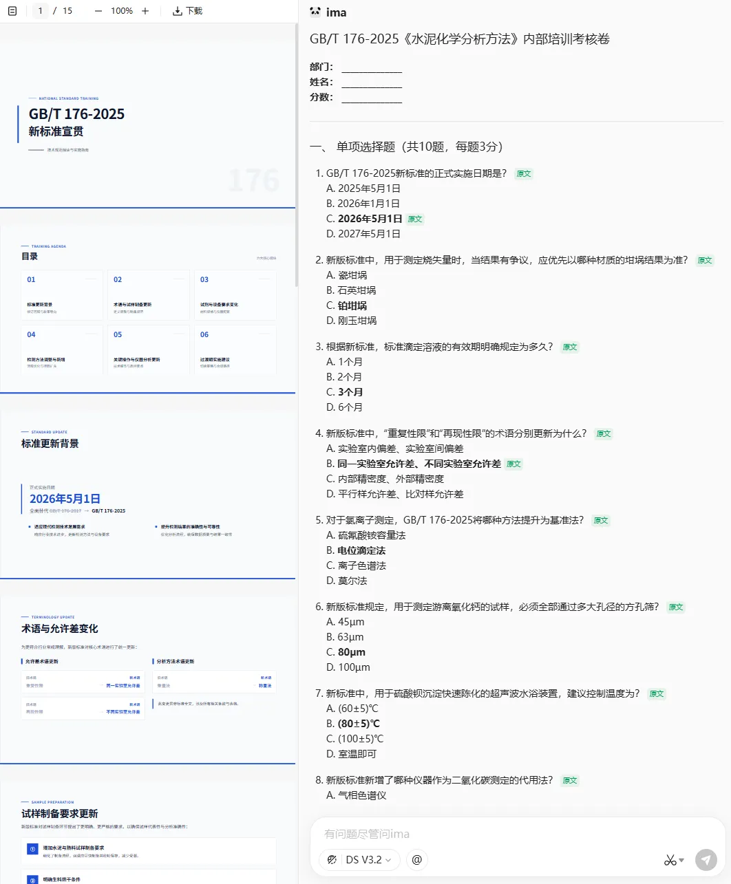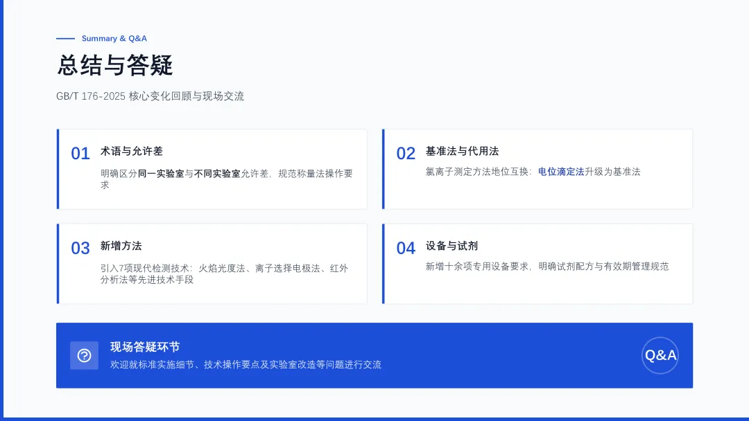 你现在是一位检测公司的技术负责人。GB/T 176-2025《水泥化学分析方法》新标准将于2026年5月1日正式实施,请基于知识库中的资料,写一份“GB/T 176-2025《水泥化学分析方法》新标准宣贯培训”的PPT大纲并生成。 用于公司内部培训。