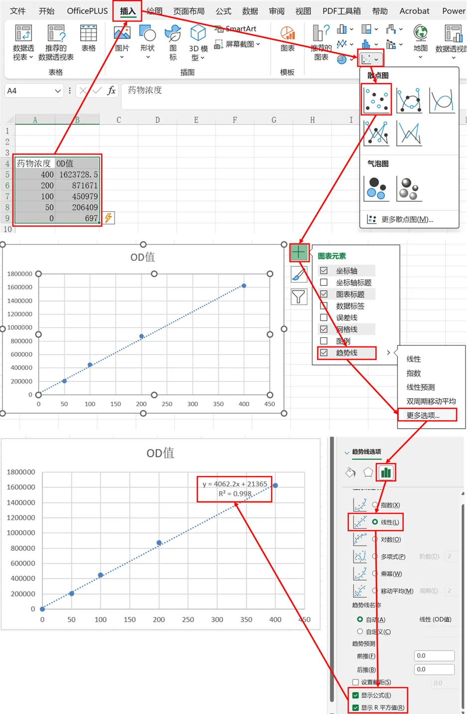 2、Excel绘制标准曲线