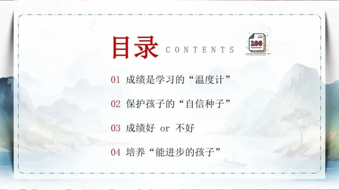 1、模板名称:《家长会:分数之外,孩子的成长更有力量》PPT(含逐字稿)(30页);