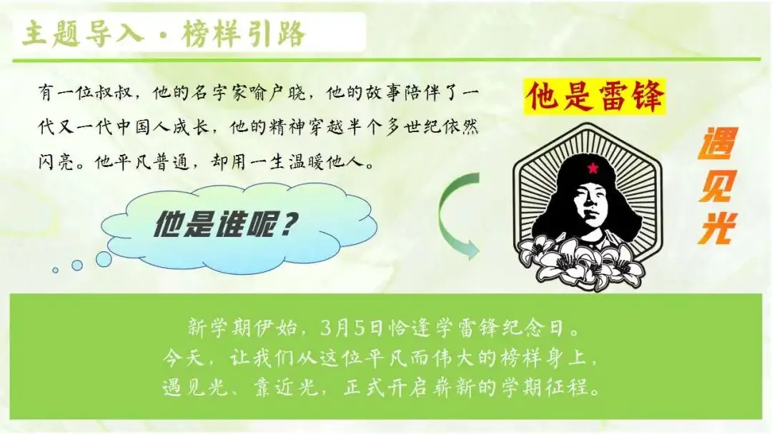 学雷锋纪念日班会ppt:汲取榜样力量.(含视频、教学设计、文稿)