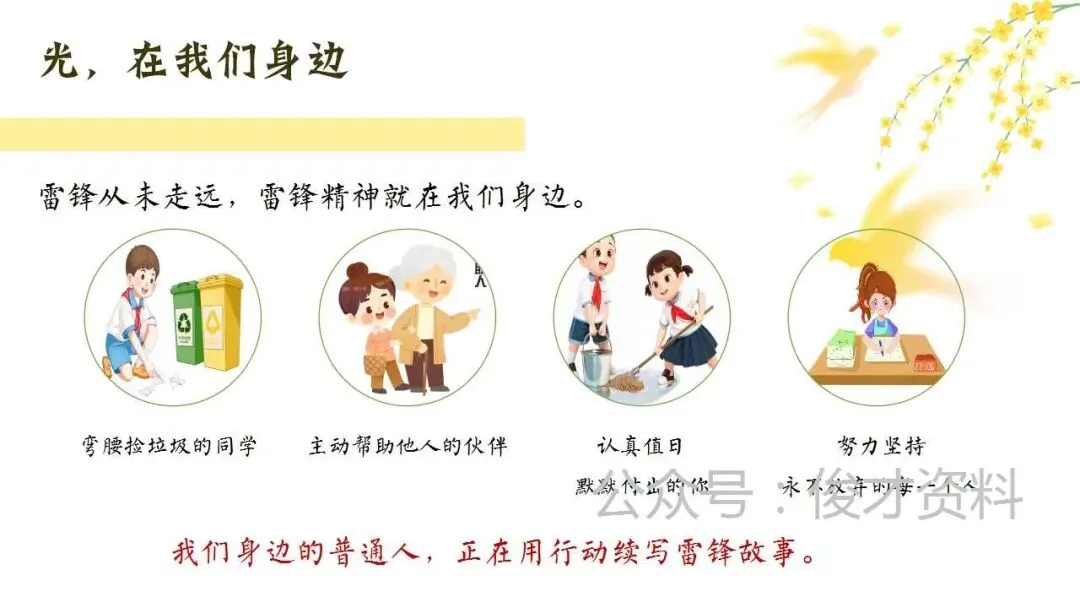 学雷锋纪念日班会ppt:汲取榜样力量。