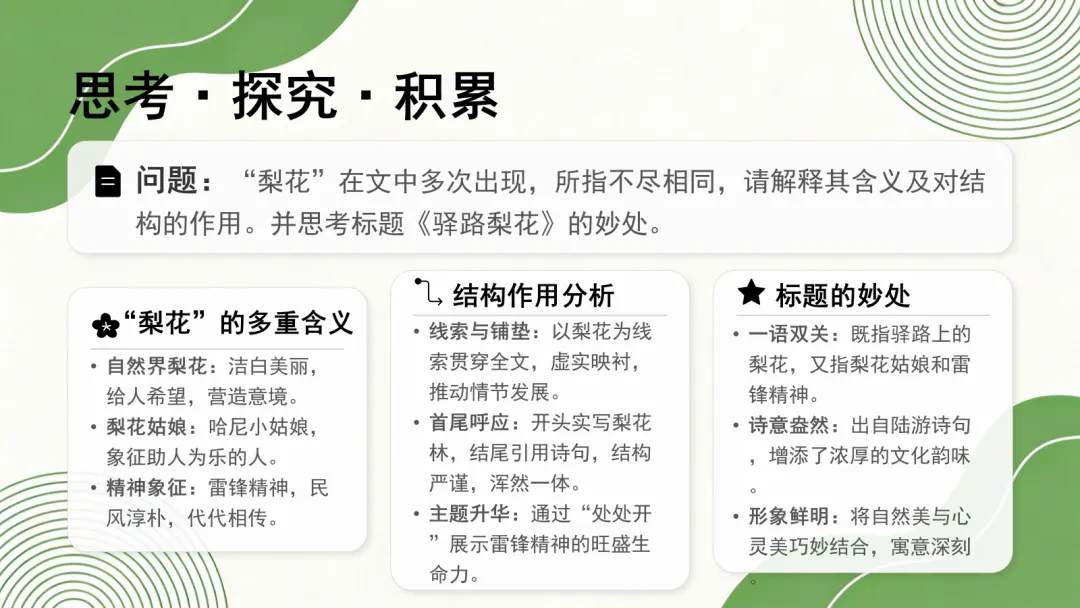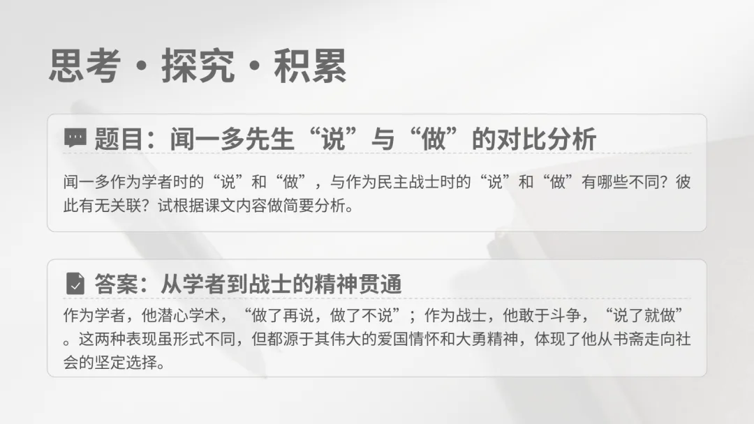 慢煮时光,细琢习题。我把七年级下册的语文课后习题答案,藏进了这帧唯美PPT里。不赘一语,不落一题,只为给你最精炼的指引。愿它如清风拂过讲台,亦能点亮你窗前的书桌。