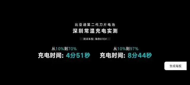 要解决这些问题,关键在电池,距离第一代刀片电池发布过去六年,比亚迪这次带来的第二代产品,核心就两个字:闪充。