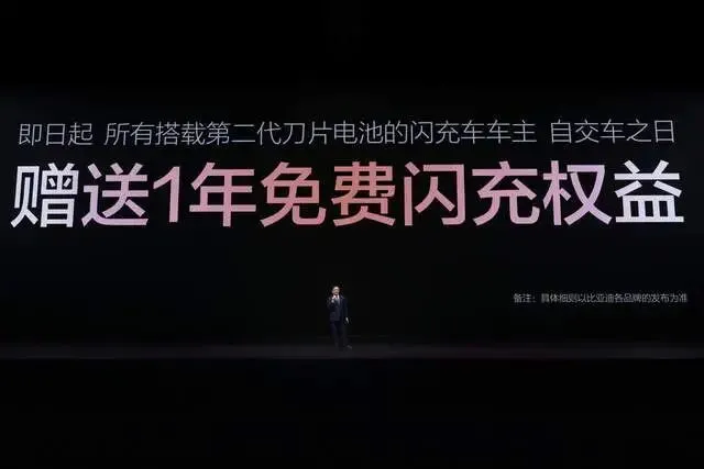 发布会现场,比亚迪还宣布了一项重磅福利:所有搭载第二代刀片电池的闪充车车主,自交车之日起在全国闪充站可享受1年的免费闪充权益。免费期结束后,收费标准与行业保持一致,不会额外收费。
