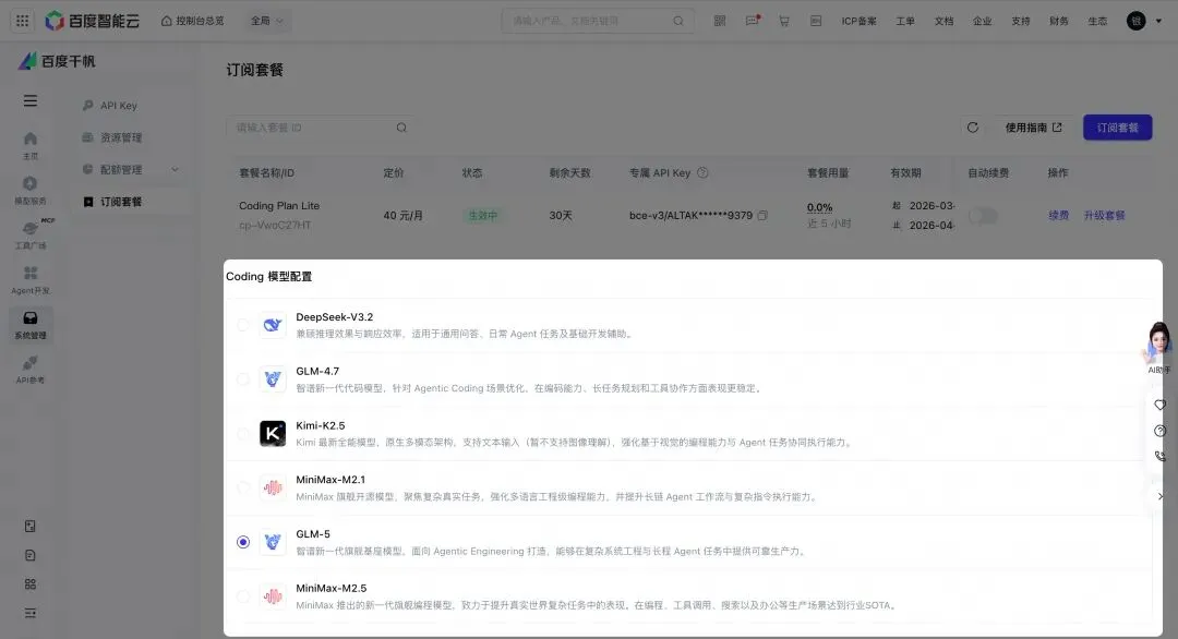 购买地址:https://cloud.baidu.com/product/codingplan.html?from=yinhai