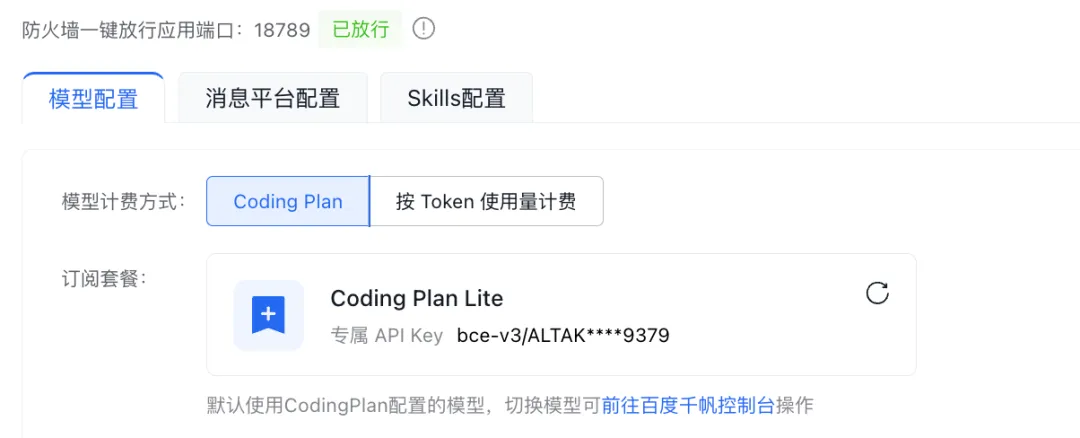 这次我用的是百度智能云的千帆的 Coding Plan 套餐,再加上我之前在云服务器上部署好的 OpenClaw。