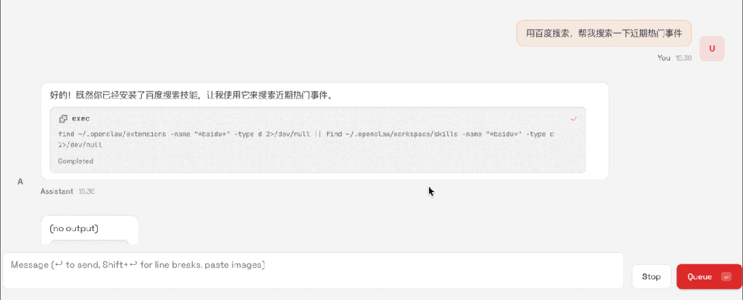 接下来,我们直接给小龙虾去下一些任务,比如搜索新闻,生成PPT,深度研究对话等等都可以。